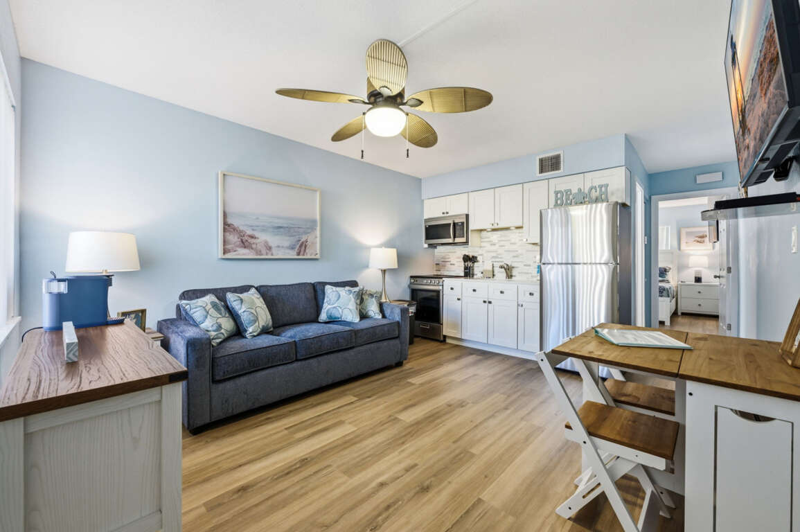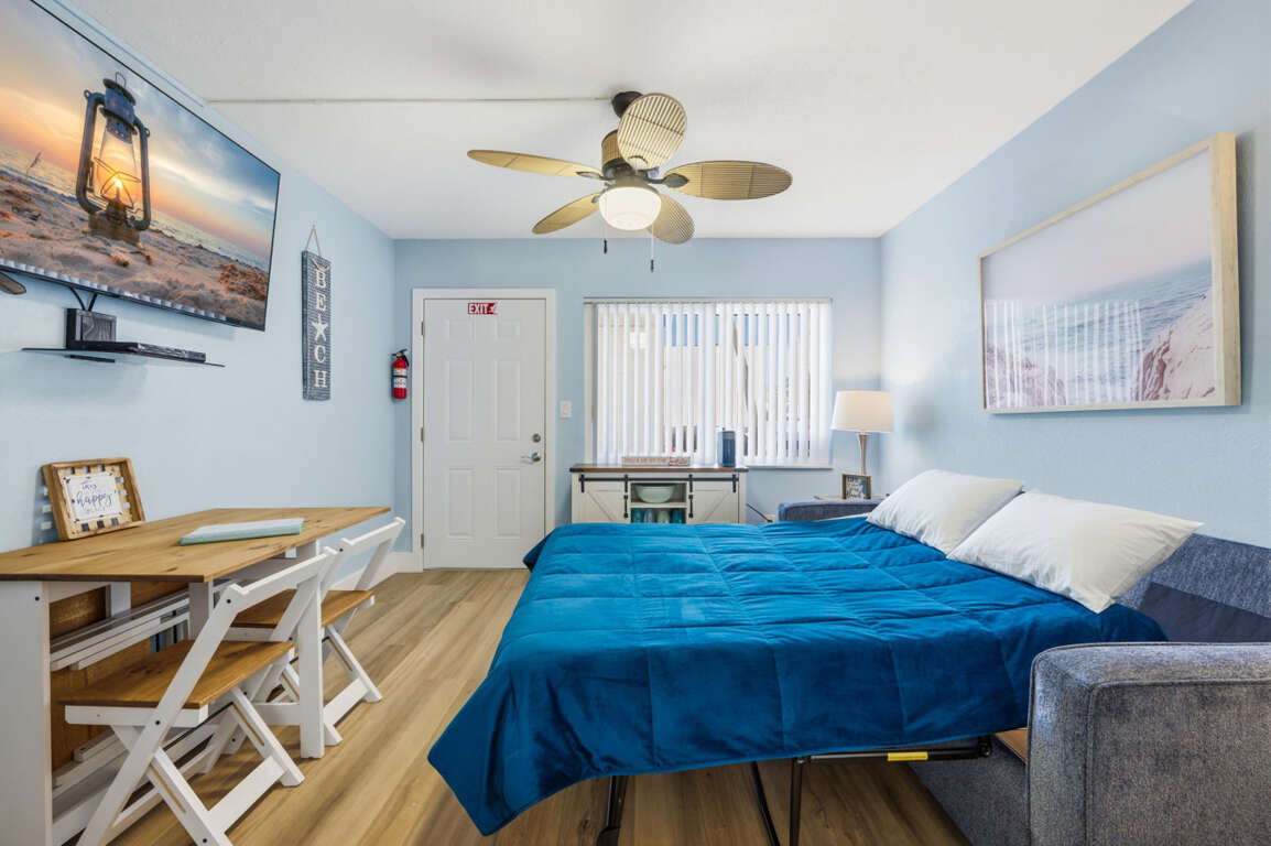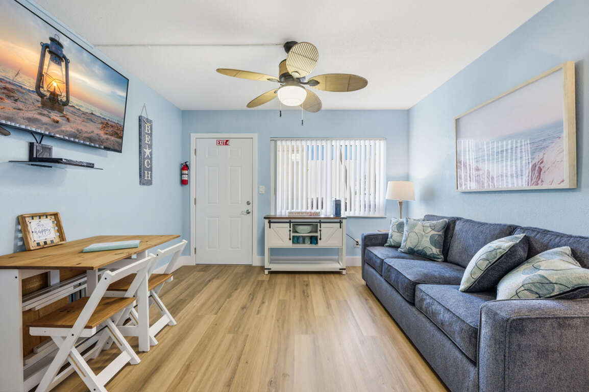 This Tropic Breezes one bedroom condo features beautiful new decor, a king-size mattress, and is located on the first floor. Unit sleeps four with a king-size bed, double sleeper sofa in living room, and free WiFi. The condo is located right across the street of the Public beach access. It is also within walking distance to a variety local restaurants and shops. The large heated pool is enclosed from the street by privacy fencing. You can relax in the shade or lounge on the tiki hut. You can use the BBQ Grill and Shuffleboard, as well as the coin-operated laundromat. Please note that this unit can only be parked in one vehicle. Additional parking is available in the area. For more information, please contact us. Johnas Pass is home to a variety of shops and restaurants set in an old-style fishing village. You can watch pelicans diving for fish, see dolphins play, shop until you're satisfied, or just relax and enjoy the delicious food and drink. You can fish, but you can also rent a boat, go on a pirate cruise, or take a sunset dolphin cruise. There are many restaurants, bars, shops and public beaches within the city limits. Madeira Beach offers endless opportunities for memories and activities!