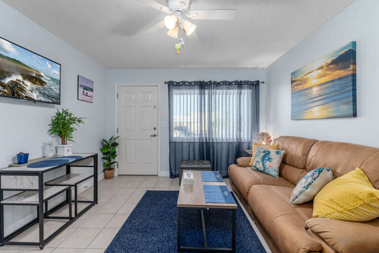 The second floor is a Gulf and pool view condo with one bedroom and one bathroom. Sleeps two in a king-size bed in the bedroom with a wall-mounted flat-screen TV in the living area. Free WiFi too! The bathroom is updated nicely and has a walk-in shower. This condo is right across the street from the Public beach access and is within walking distance of various local restaurants and shops. ***Please note: Parking for this unit is limited to one vehicle. Additional parking in the area is available. Please ask us for details. *** LAUNDRY ROOM NOT AVAILABLE INDEFINITELY***