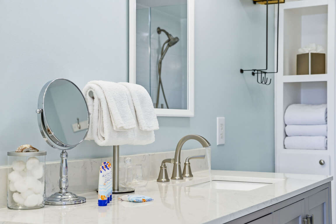 Two full bathrooms and a fully equipped kitchen with modern appliances