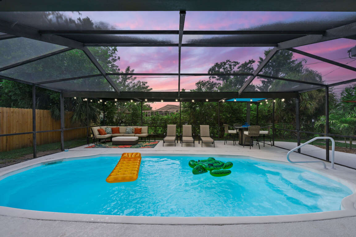 The pool is private and screened, perfect for swimming or relaxing in comfort.