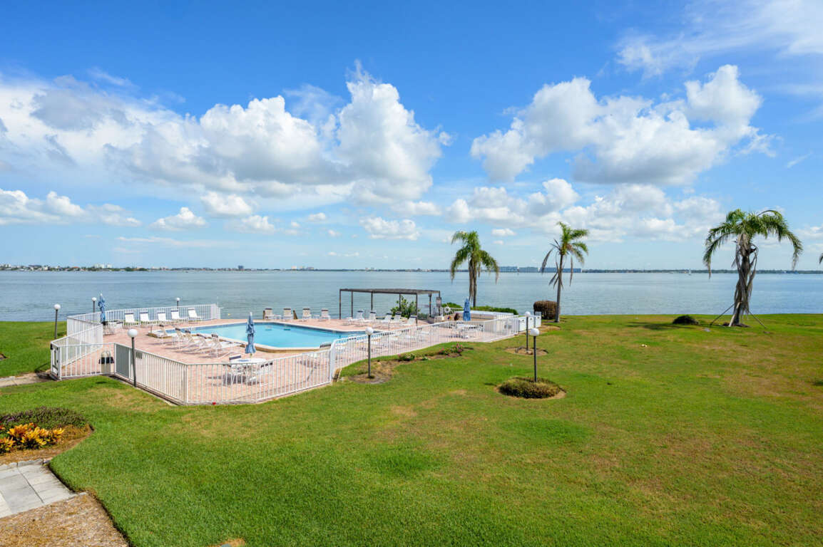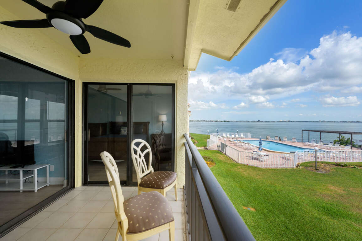 Panoramic views of Boca Ciega Bay from the living room and private balcony