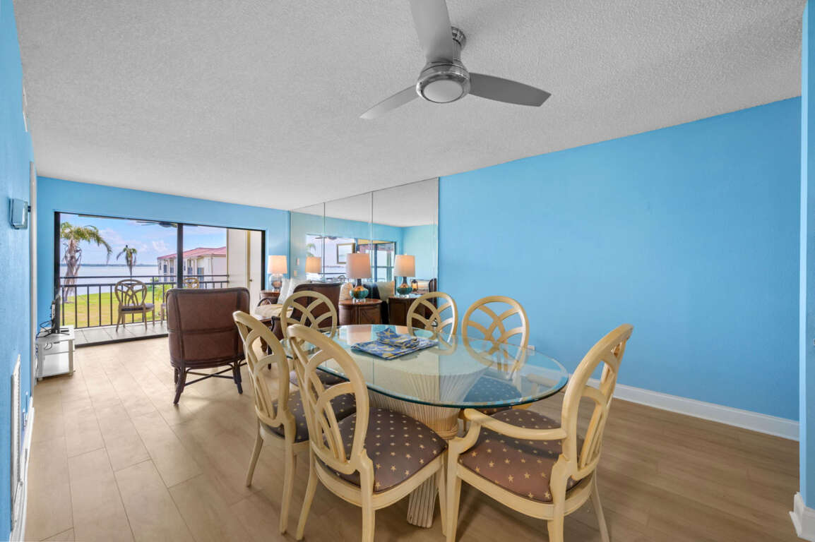 Open living & dining area with sliding glass doors that bring the water views right inside