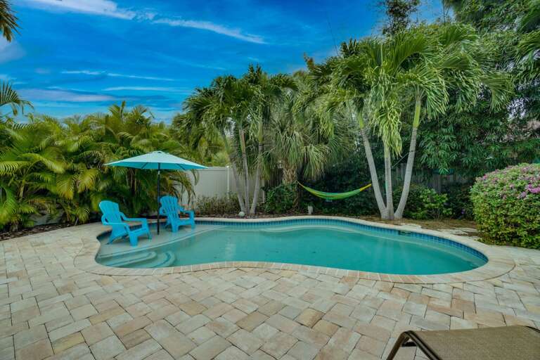 The private pool and outdoor area at Seaglass Cottage offer a revitalizing oasis for guests to relax and enjoy the tropical surroundings of Anna Maria, Florida. Step into the invigorating waters of the private pool, complete with a sun ledge for lounging under the warm Florida sun. Surrounding the pool, lush tropical foliage creates a tranquil atmosphere, enhancing the feeling of being in a tropical paradise. After a swim, rinse off in the convenient outdoor shower before settling back on a comfortable lounge chair to bask in the sun-drenched haven. Whether sipping a cool drink poolside or unwinding in the shade of a palm tree, the outdoor area at Seaglass Cottage provides the ultimate relaxing oasis for your vacation escape.