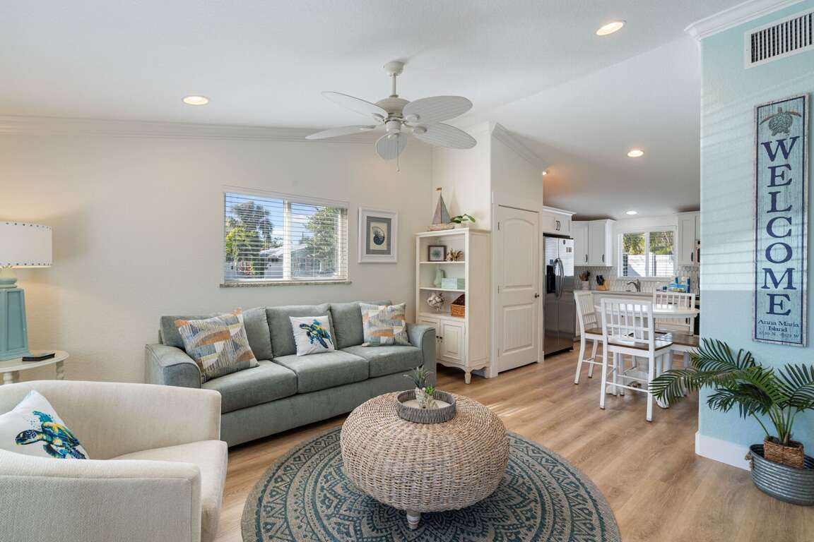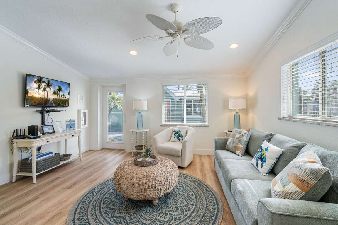 Discover the inviting features and amenities of Sunset Azul, a charming 2-bedroom cottage located in Holmes Beach, Florida. The cottage offers a cozy retreat with room amenities that include a king bed, 2 twin beds, and a sleeper sofa, accommodating up to 6 guests comfortably. Enjoy the convenience of a full bathroom and a living space spanning 702 sqft, providing ample room for relaxation. Step outside to explore the outdoor spaces, featuring a lovely patio area where you can unwind and soak up the beautiful Florida sunshine. Whether you're lounging indoors or spending time in the invigorating outdoors, Sunset Azul provides a delightful stay for those seeking a comfortable and peaceful vacation retreat.