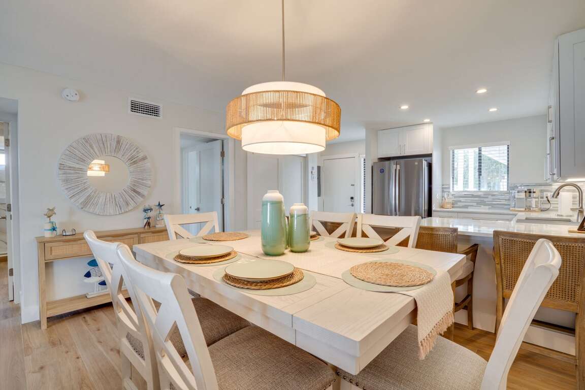 Bougie Bay, a beautiful renovated ground-floor condo located in the sought-after Runaway Bay community. This unit is just steps across the street from the breathtaking Gulf beaches of Anna Maria Island. This bright and stylish 2-bedroom, 2-bathroom unit has been completely updated with modern furnishings, a fully-upgraded kitchen, and fresh bedding to ensure a comfortable and relaxing stay. The spacious primary bedroom features a king-size bed and an ensuite bathroom with a tub/shower combo. The second bedroom also offers a cozy king bed, while the second bathroom includes a walk-in shower for added convenience. The unit also offers a full washer and dryer for your laundry needs.