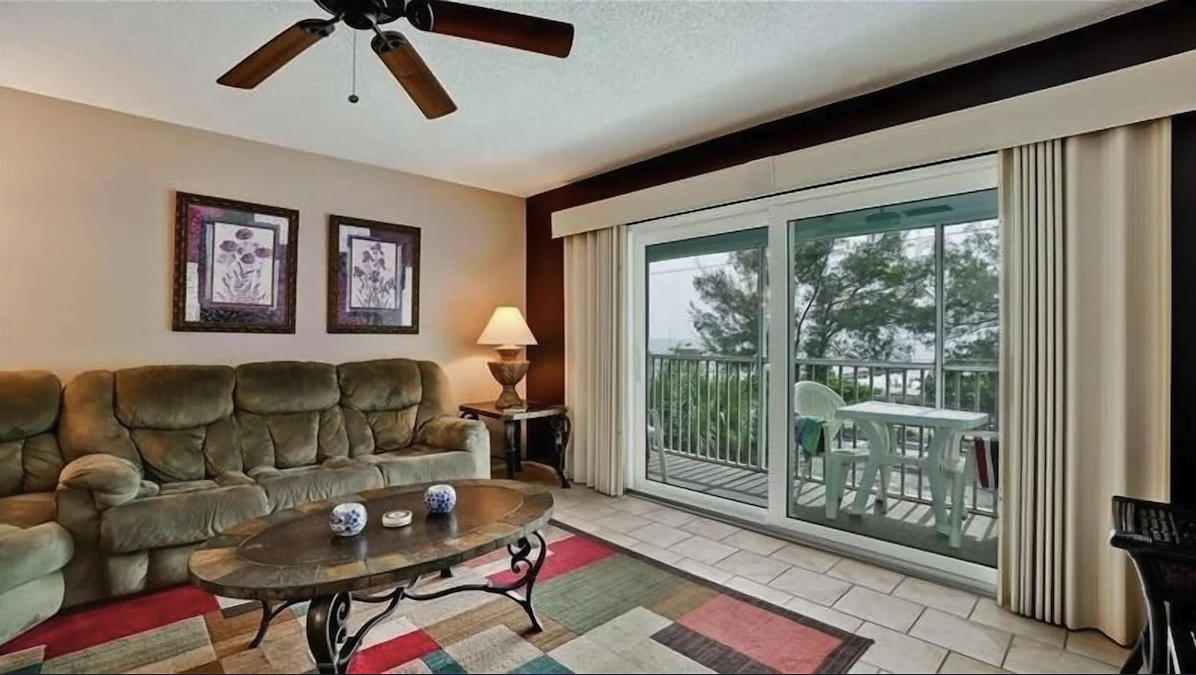 Located in Bradenton Beach, FL, the 'Sunset Soul At Pelican Cove Unit 8' is an oceanfront vacation rental offering breathtaking sea views along with comfortable accommodation in its two bedrooms.