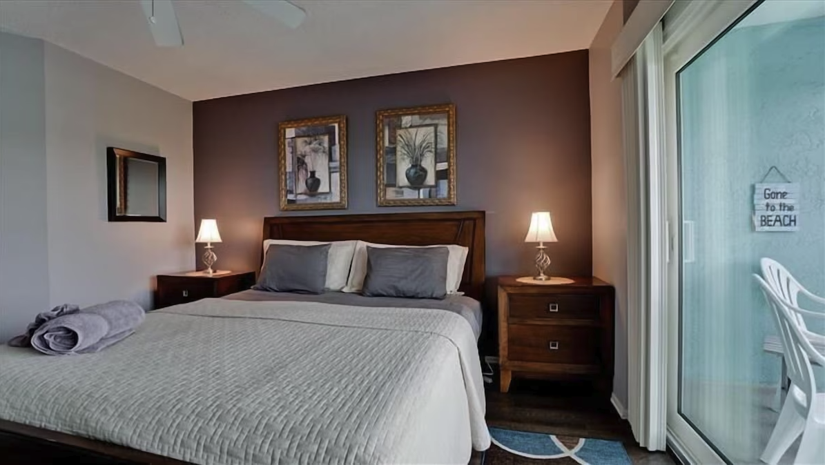 Located on the 3rd floor, this 2-bedroom, 2-bathroom condo has everything you need for a relaxing and memorable vacation. The spacious living room features an oversized sectional (with sleeper sofa) that provides plenty of seating for everyone, all perfectly positioned next to large sliding glass doors that open to a balcony you’ll never want to leave. Watch the waves roll in, enjoy the sunset, and let the sound of the surf be your soundtrack.