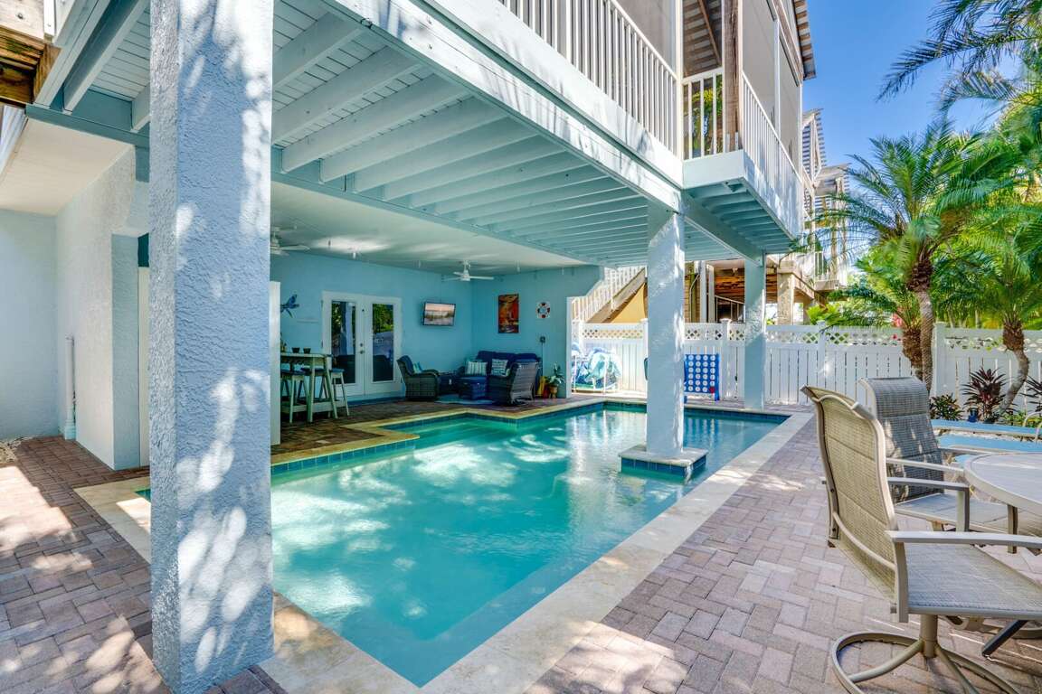 Experience comfortable living at Griffins' Island Getaway, a 3-bedroom oceanfront house in Holmes Beach, FL. Boasts a private pool, a grill, and allows pets. The ideal spot for your next vacation.