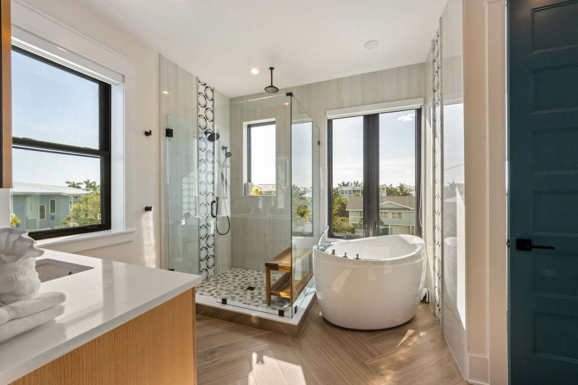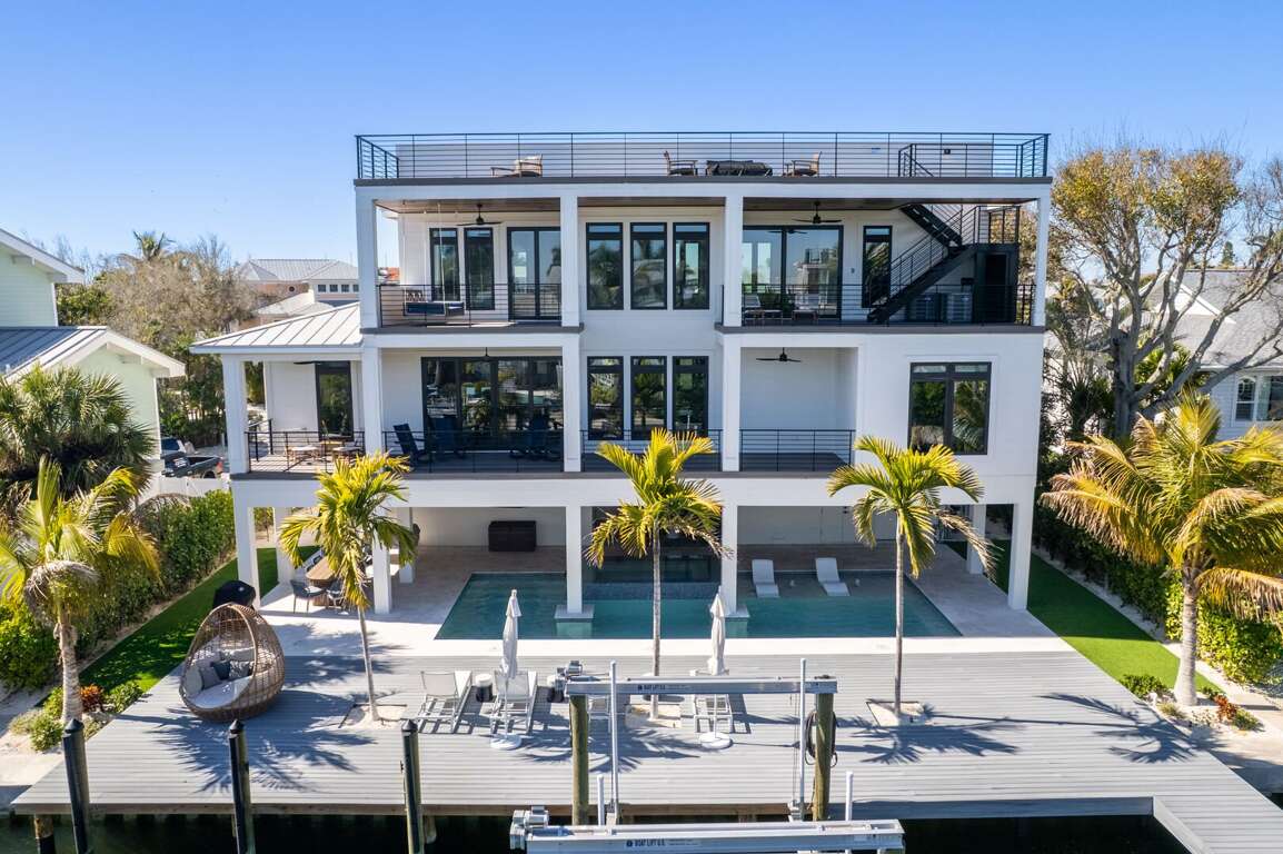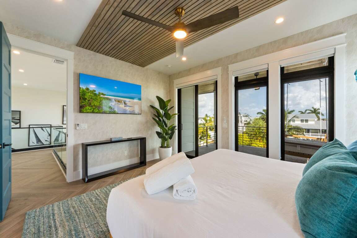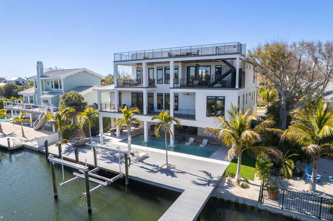 Bimini Sunrise is the kind of place that instantly makes you feel like you’re on vacation. Tucked along a peaceful canal on Anna Maria Island, this beautiful 4 bedroom/4.5 bathroom home with a rooftop deck and elevator, offers gorgeous bay views, a private dock, and an unbeatable location just a short walk from Pine Avenue, great restaurants, and the free island trolley. With its clean design and warm, inviting spaces, it’s a home that feels both luxurious and comfortable from the moment you arrive.
