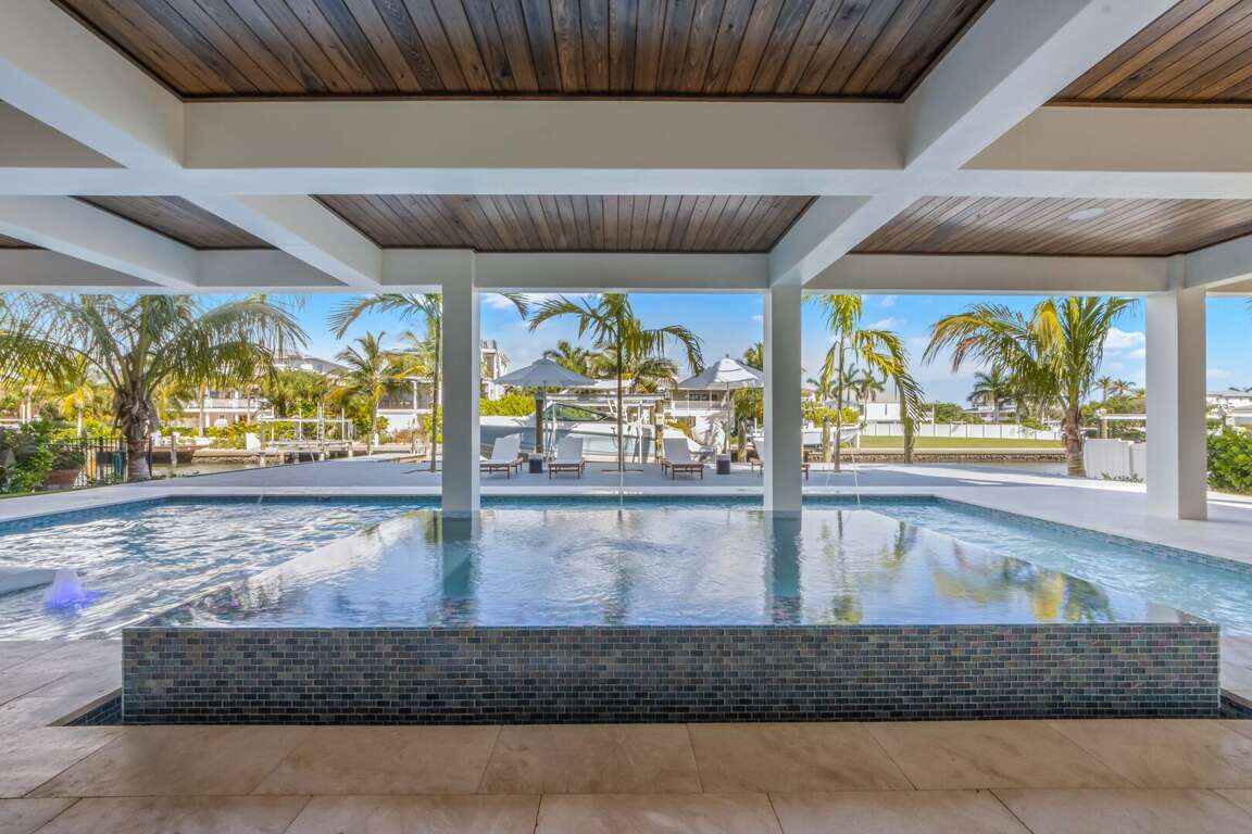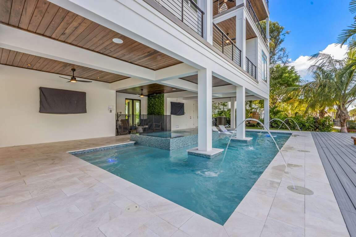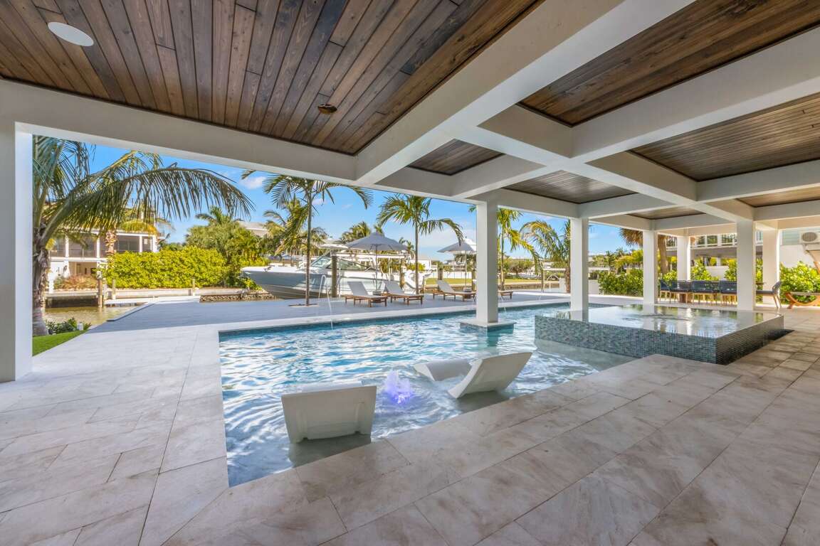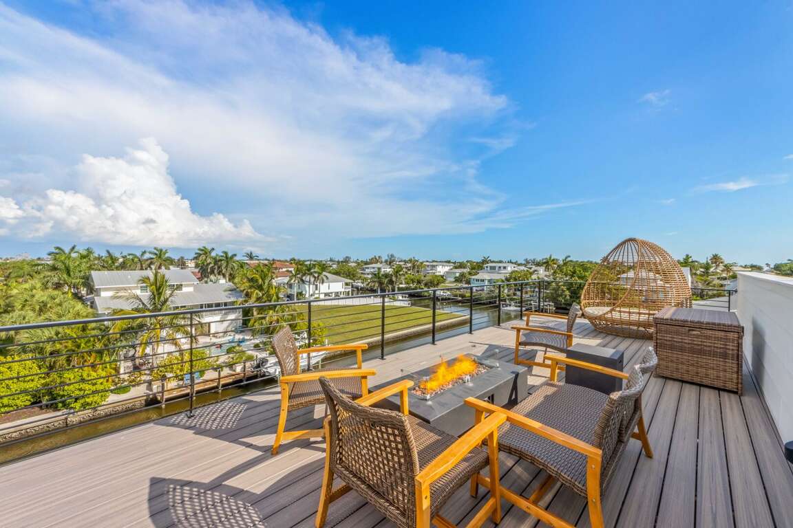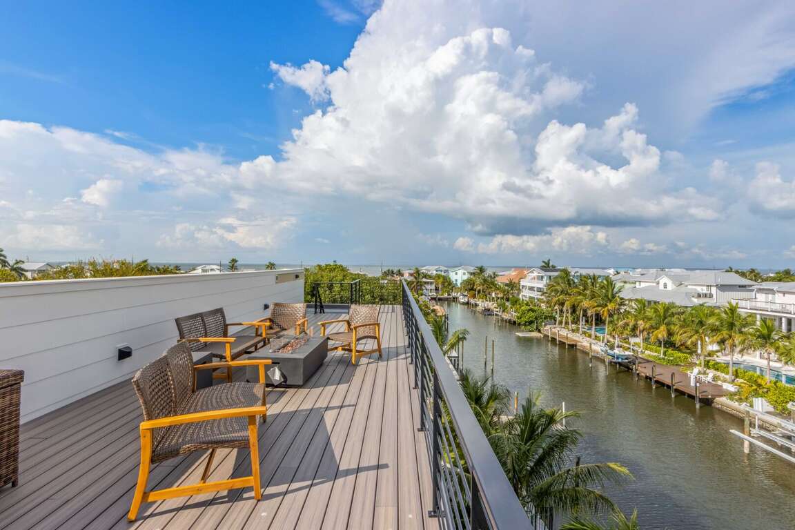 The outdoor spaces are where this home truly comes to life. Spend your days lounging by the private heated pool or unwinding in the oversized spa with in-pool loungers. Poolside loungers, umbrellas, and a covered outdoor lounge with multiple TVs and dining space make it easy to relax or gather for meals outside. For sunset lovers, the rooftop deck is a favorite spot, offering sweeping views and a cozy fireplace for cooler evenings. Multiple verandas throughout the home provide quiet places to sit back and take in the canal and bay views. For those who love the water, the private dock can accommodate boats up to 32 feet, and two paddleboards and two kayaks—one single and one tandem—are included for exploring the surrounding waterways. There’s also a gas grill for cookouts, a foosball table for a little friendly competition, and beach towels, chairs, and a beach wagon ready for your days on the sand. With parking for up to five cars in the driveway, everything you need is right here.