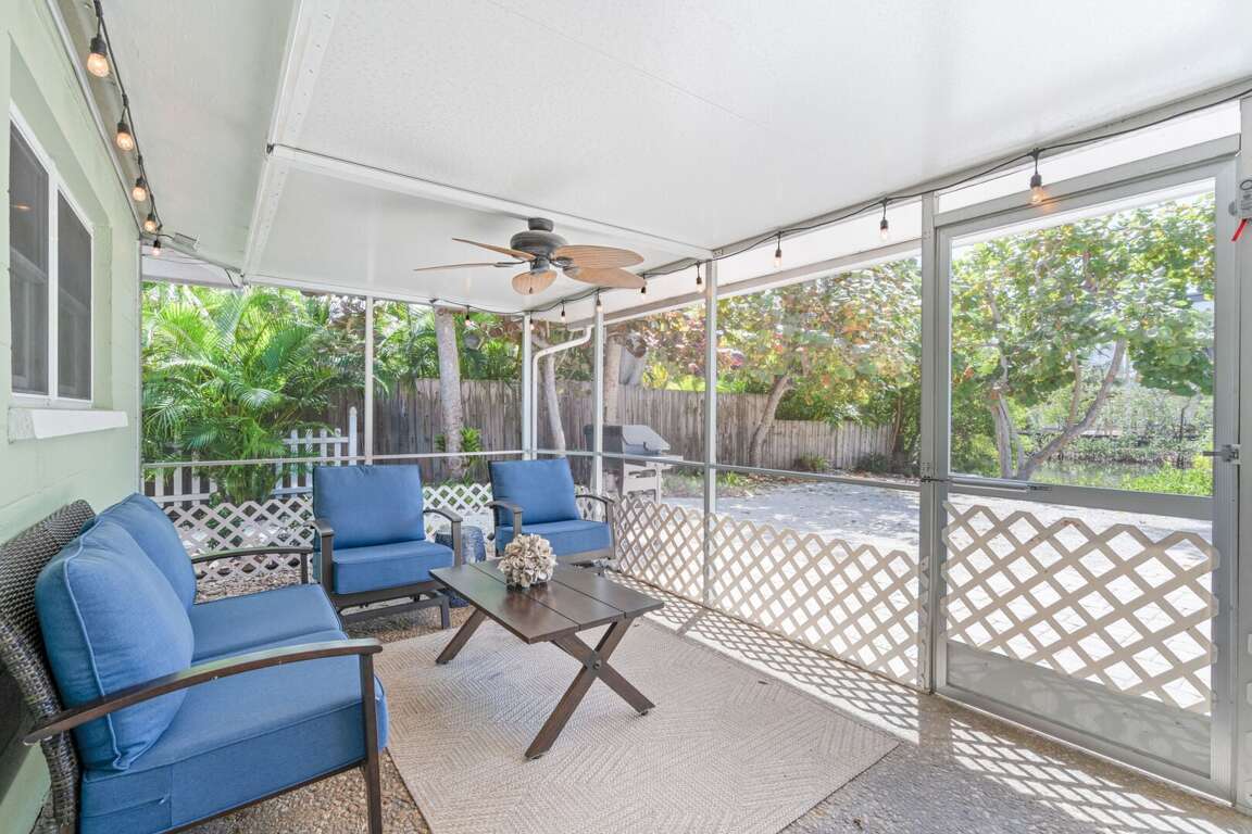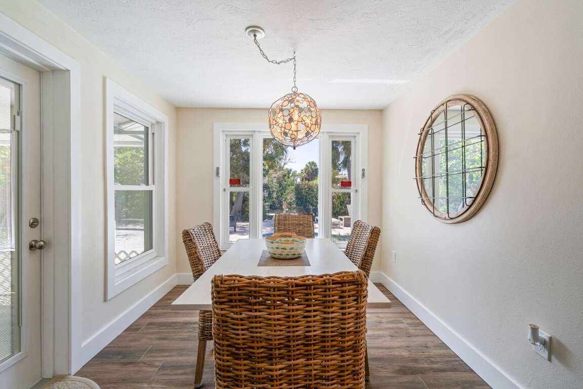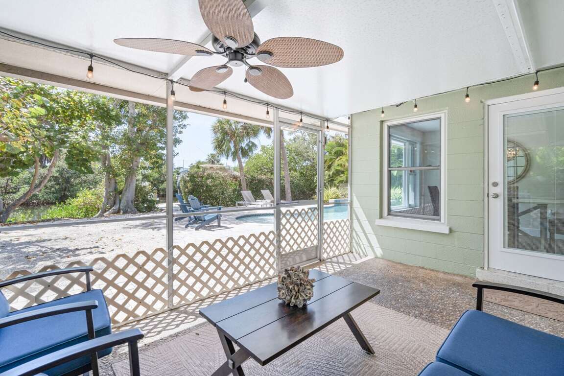The outdoor living space is your own private oasis, where you can swim in the sparkling pool, lounge in the screened lanai, or enjoy the sunshine while watching boats glide by along the canal. The private dock provides quick access to the bay for boating and fishing adventures, and after a day on the water, the poolside grill and outdoor shower make it easy to unwind and enjoy the breeze.