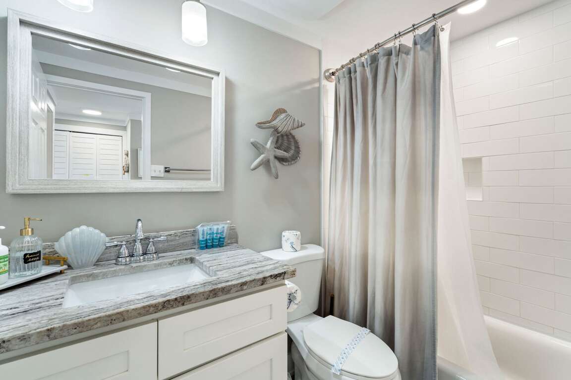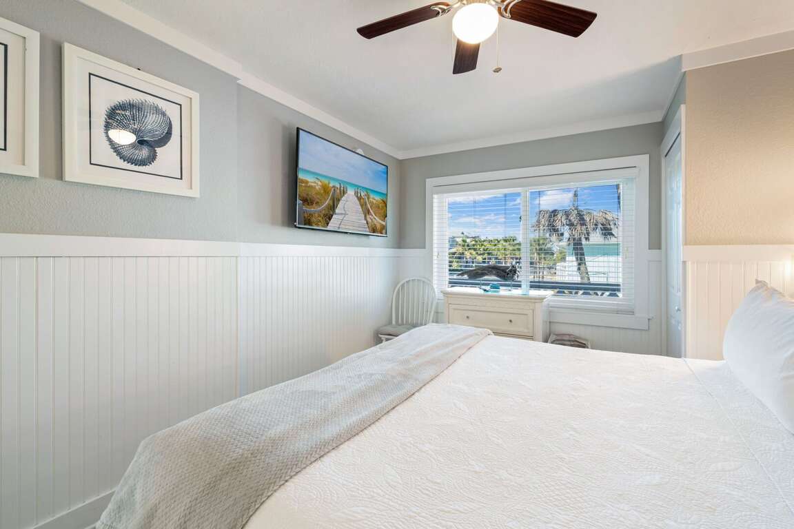 You’ll love the unbeatable location with beach access directly across the street, making it effortless to enjoy morning walks, sunset views, and full days by the Gulf. The condo is also just steps from Bridge Street, where you’ll find popular shops, dining, and nightlife, all within easy walking distance. This spacious retreat features two bedrooms and two bathrooms, comfortably accommodating couples, families, or friends traveling together. Both bedrooms offer king beds, while a sleeper sofa in the living area provides additional sleeping space. The bright, open-concept living area is designed for relaxed island living, offering plenty of natural light and space to unwind after a day at the beach. The primary bedroom includes a private ensuite bathroom with a walk-in shower, while the hall bathroom features a convenient shower/tub combination. Guests will appreciate thoughtful extras like complimentary beach chairs, beach cart, and towels, making beach days easy and stress-free.