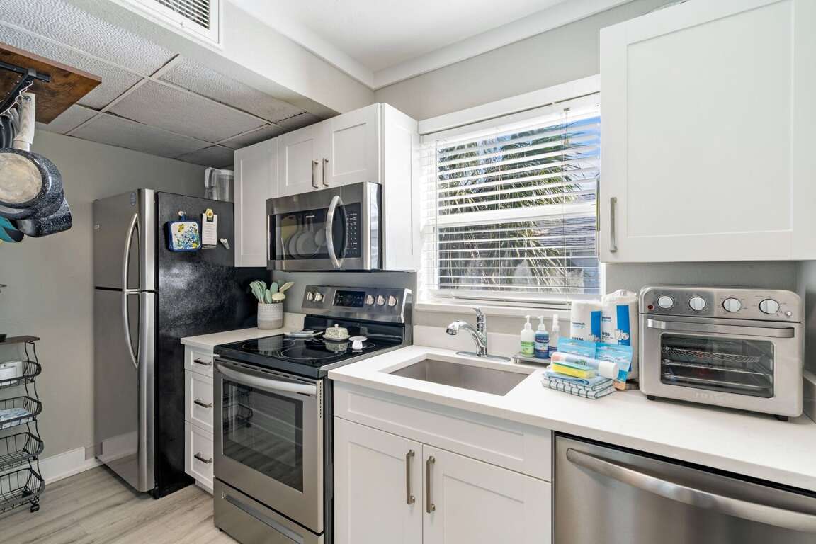 Additional conveniences include a washer and dryer and free WiFi. With only a handful of units in the building, guests enjoy a quieter, more intimate island atmosphere. Assigned parking spot is included with additional parallel guest parking available along 25th Street North for added convenience.
