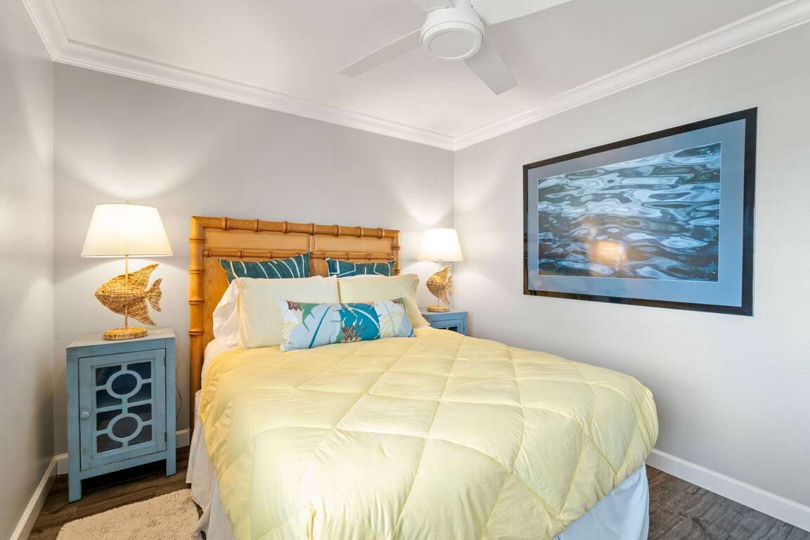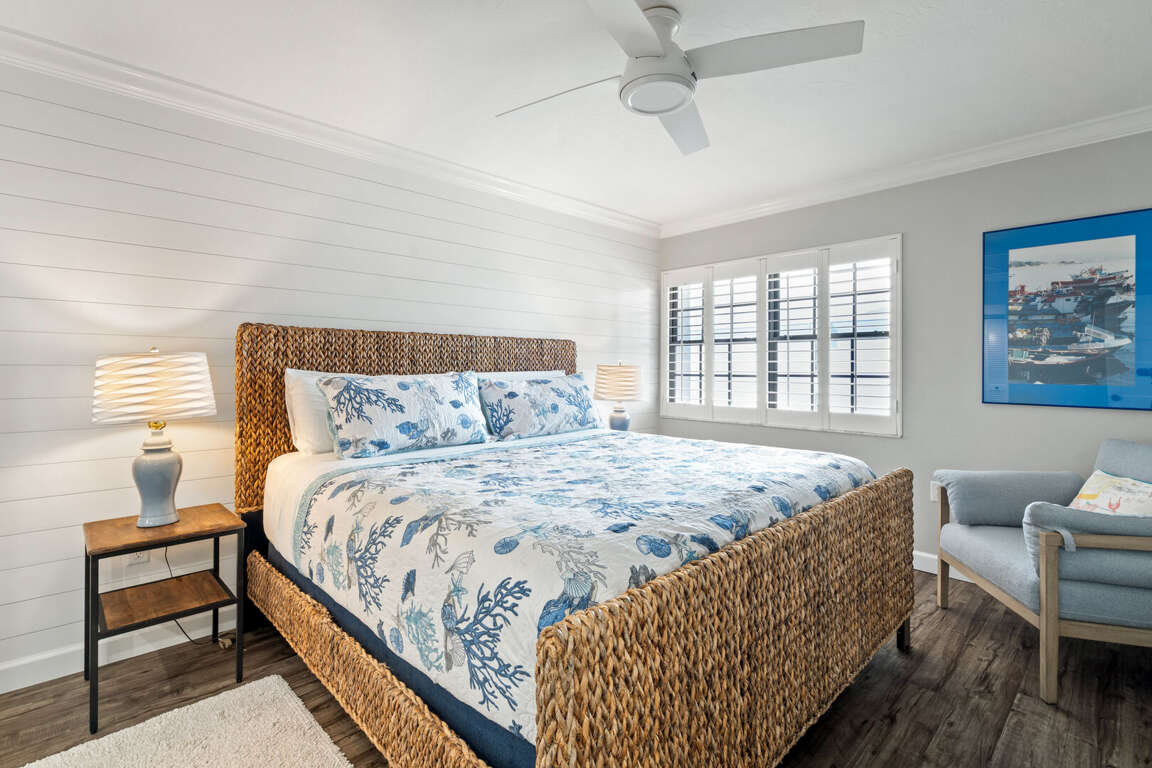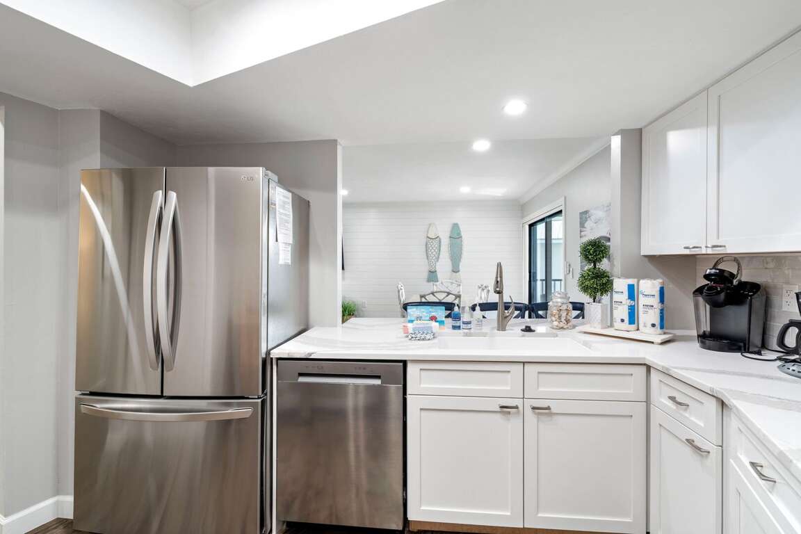 Stepping inside, you’ll find an inviting living and dining area that flows seamlessly to the balcony, creating an open and airy feel. The bright kitchen is fully equipped with white granite countertops, stainless steel appliances, and a moveable butcher-block island, making meal preparation easy and enjoyable. Down the hall, the primary bedroom offers a king-size bed and a private ensuite bathroom for added comfort and privacy. Two additional bedrooms include one with a queen-size bed and a third bedroom with two twin beds, both sharing the second full bathroom. For added convenience, this condo also includes an in-unit washer and dryer. With direct beach access, stylish updates, and all the comforts of home, this Holmes Beach retreat is perfect for families or friends looking to unwind and enjoy island living.