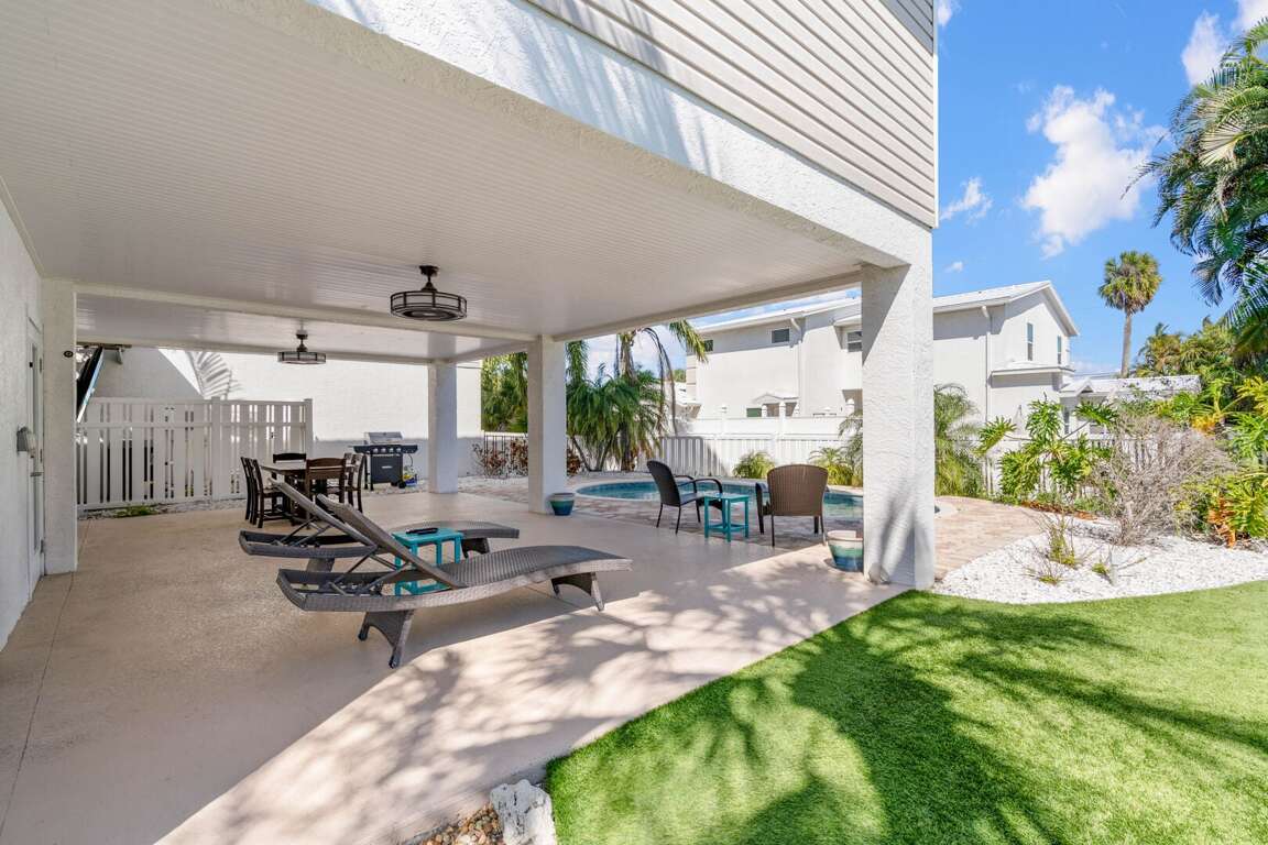 Outdoor living is just as inviting. The backyard features a private heated pool surrounded by low-maintenance artificial turf and comfortable outdoor seating, perfect for relaxing after a day at the beach. In the front, a welcoming porch provides a peaceful spot to enjoy morning coffee or evening breezes. Whether you’re lounging by the pool, enjoying the sunshine-filled interior, or taking the short stroll to the beach, this home offers a relaxing coastal escape with all the comforts you need.