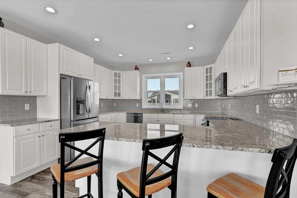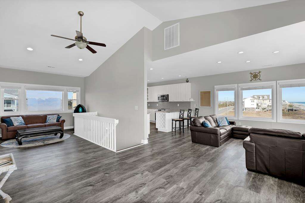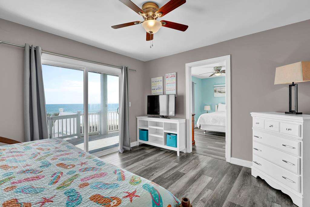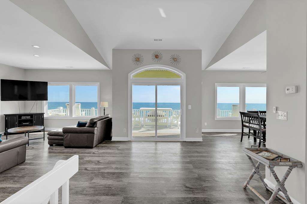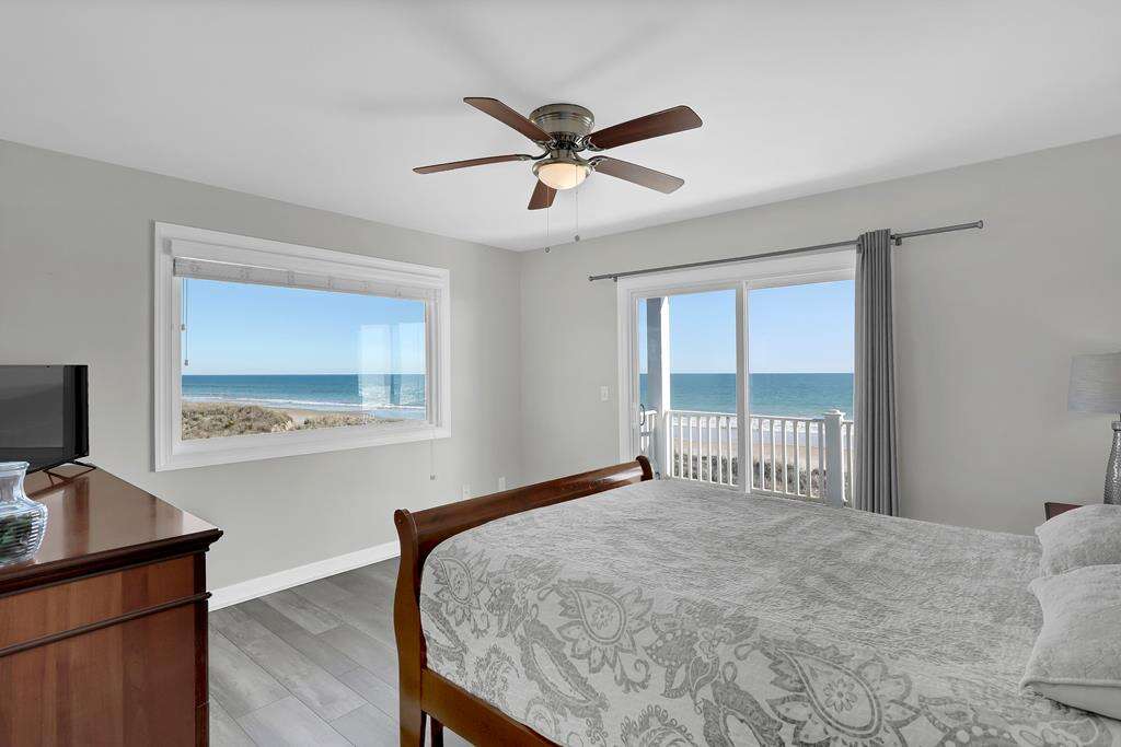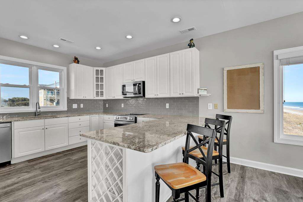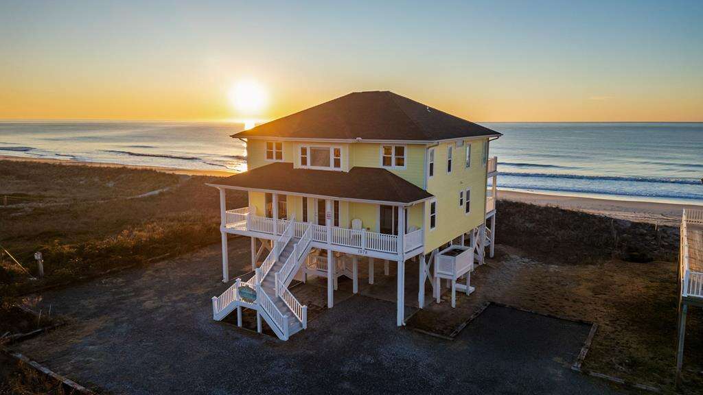 Imagine this .... Imagine this: You and your family have just returned from the beach on a warm summer night. Now you are all sitting on your deck, sipping iced drinks, looking out at the Atlantic Ocean. 1078 New River Inlet Road - Sun Always Rises is located in North Topsail Beach. It's an oceanfront paradise with 4 bedrooms, 3 bathrooms, as well as your own beach access. Upstairs, you will find a large, open-plan kitchen with breakfast bar that seats 3, a living room with cable TV and a dining table for 8, and a queen-sized bedroom with cable television, ceiling fan, and dual access to the bathroom. On the landing, you can also choose to have a queen sleeper couch. The total number of people that can be accommodated is 12. Downstairs, there is a queen-sized bedroom with deck access, and ocean views. There is also a dual bathroom with a bathtub over shower. The sitting room has a twin daybed and twin trundle with access to the oceanfront queen room, hallway and oceanfront deck. This is perfect for kids! On the same floor. The master suite features a queen-sized bed, a walk-in shower, and an oversized bathtub. You can also enjoy the beach and sound views from decks on either side of your house. You can even read a good book in your own sitting area. This property is pet friendly (fees may apply) and there are gated access points to the deck that keep your pets contained. You can walk to the beach and sit at the end if the walkway to watch the sunset from your private access.