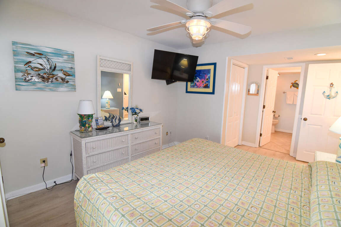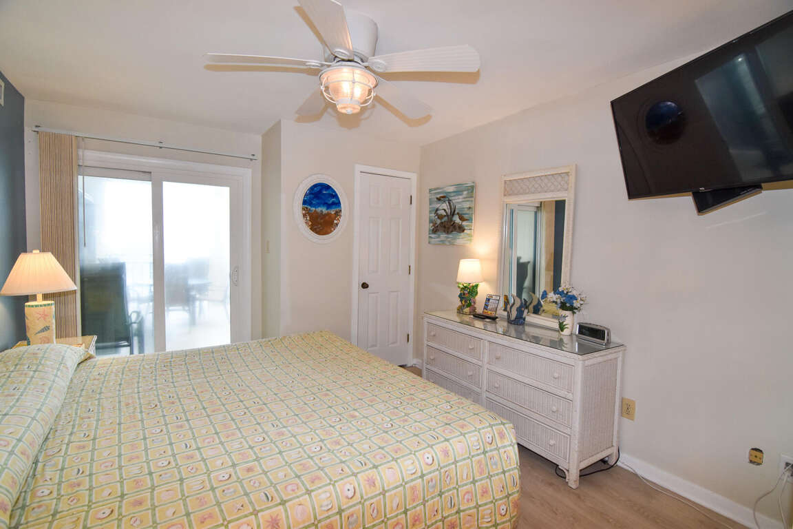 The living room of this vacation condo in North Myrtle Beach offers a stylish and comfortable space for guests to relax and enjoy their stay. The furniture and decor in the living room are carefully chosen to create a welcoming atmosphere. Guests can sink into the plush sofa or armchairs and admire the stunning view of the ocean through the large windows. The living room is also equipped with a new 47-inch television, providing entertainment options for those who wish to unwind after a day of exploring the beach and nearby attractions. Whether it's watching a movie or catching up on the latest shows, guests will have plenty of entertainment choices to make their stay enjoyable.