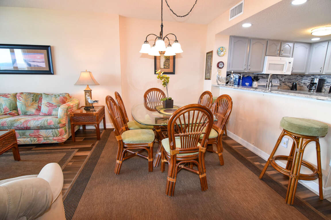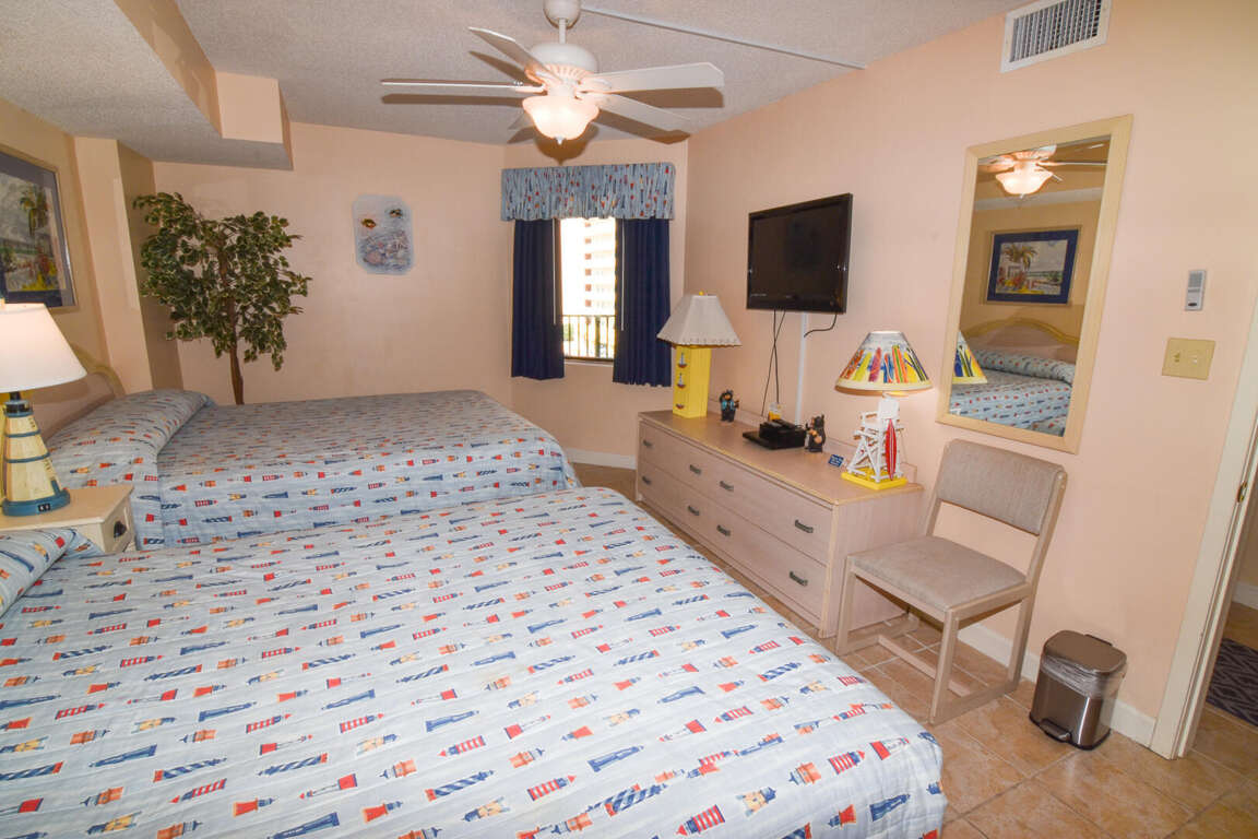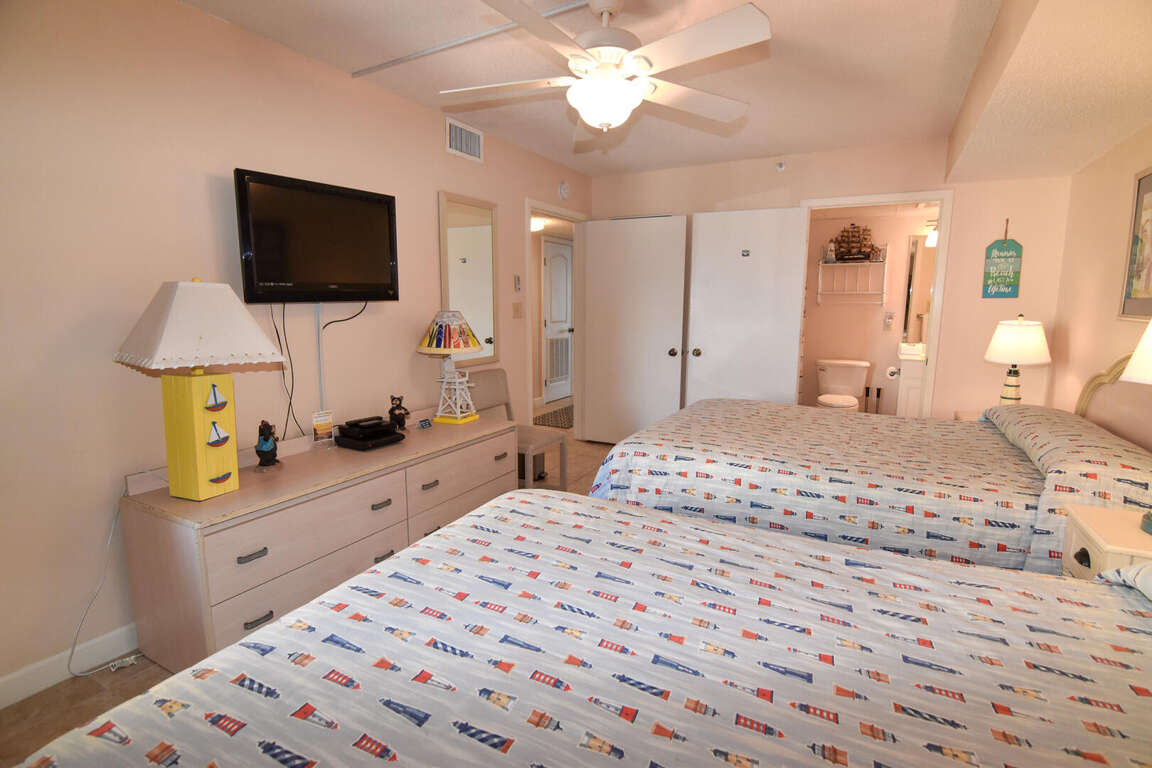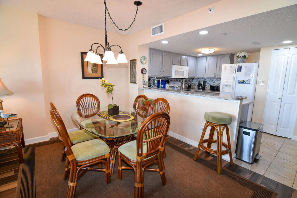 The vacation place in North Myrtle Beach, South Carolina offers spacious and comfortable accommodation for guests to enjoy their stay. With 3 bedrooms and the capacity to sleep 12 people, this condo provides ample space for families and groups of friends. The bedrooms feature a king bed, 4 queen beds, and a queen sleeper sofa, ensuring a restful night's sleep for everyone. The 3 bathrooms provide convenience and privacy for guests. The fully equipped kitchen allows for easy meal preparation, giving guests the freedom to dine in if they choose. Flat panel televisions are available in the living room and all bedrooms, offering entertainment options for everyone. These amenities, along with the condo's prime location and proximity to various attractions, make it an ideal choice for a vacation in North Myrtle Beach.