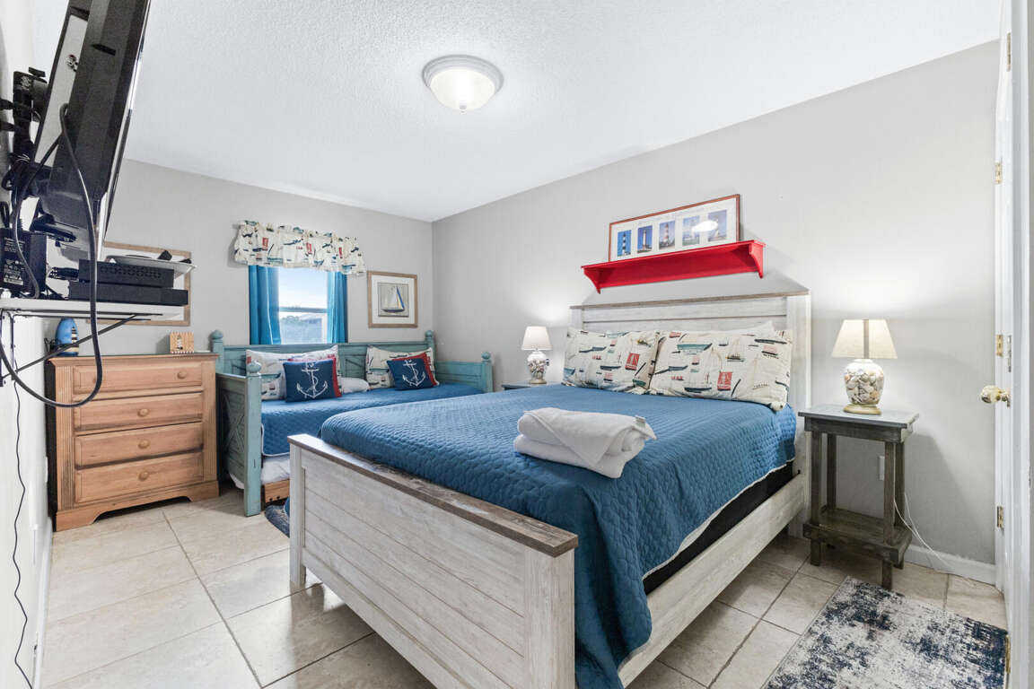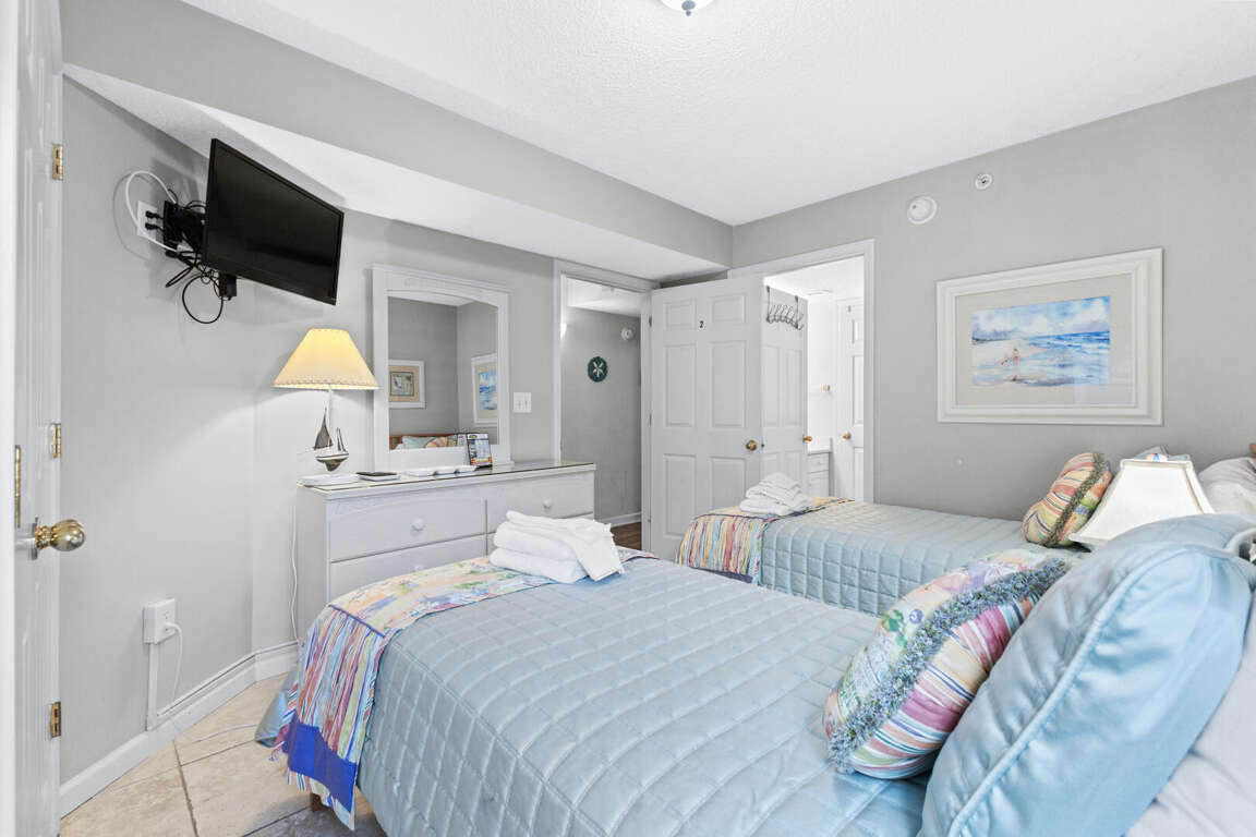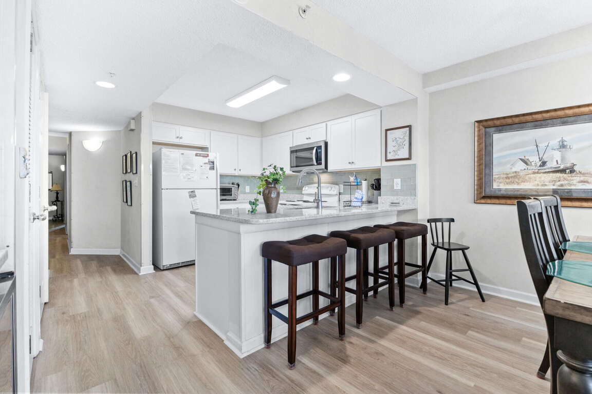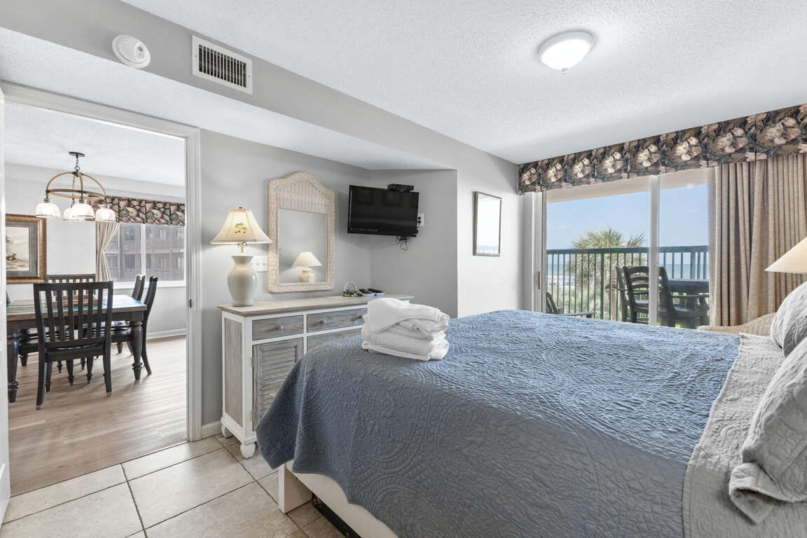 Boasting an array of impressive features, this vacation condo in North Myrtle Beach, South Carolina offers a luxurious and comfortable retreat for your getaway. With its corner unit location on the first floor, the condo is flooded with abundant sunlight, creating a warm and inviting atmosphere. The condo layout includes four bedrooms, providing ample space for you and your guests. The master suite features a Jacuzzi tub, a king-size bed, and balcony access, allowing you to relax and unwind in style. The second bedroom offers a swing king bed, while the third bedroom has two twin beds. The fourth bedroom includes a queen bed and a twin trundle, accommodating various sleeping arrangements. With its thoughtful bedroom configurations, this vacation condo ensures everyone enjoys a restful night's sleep.