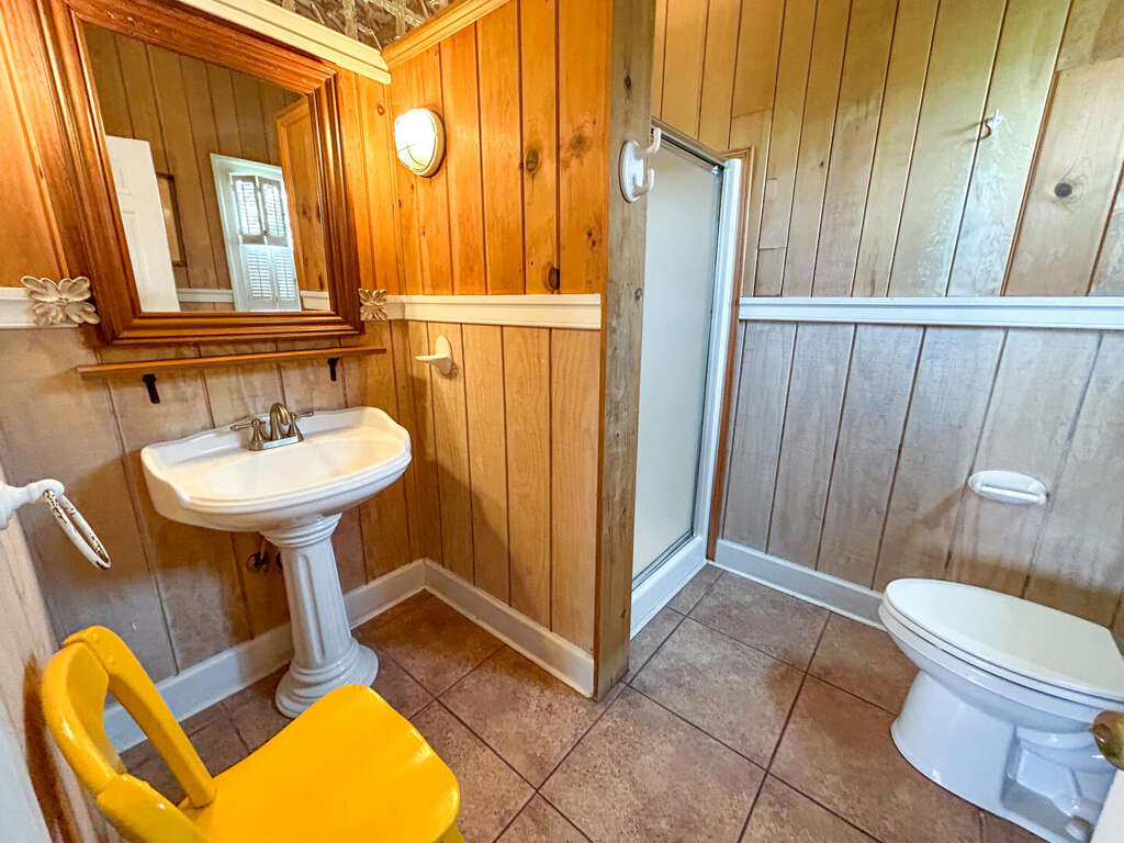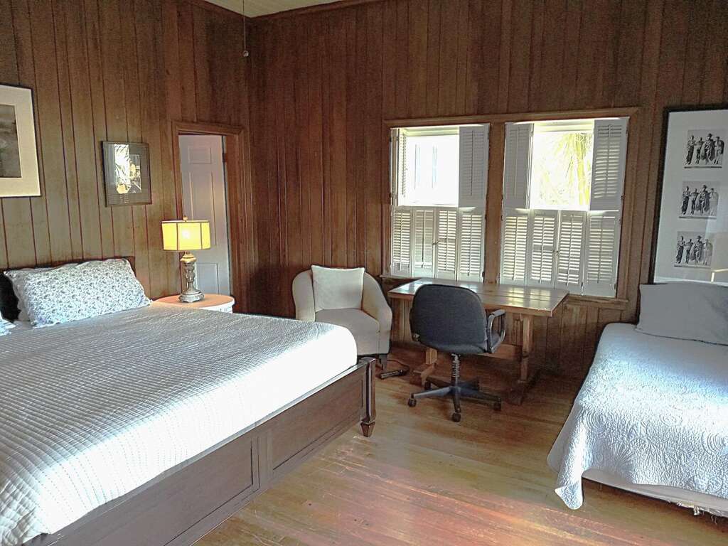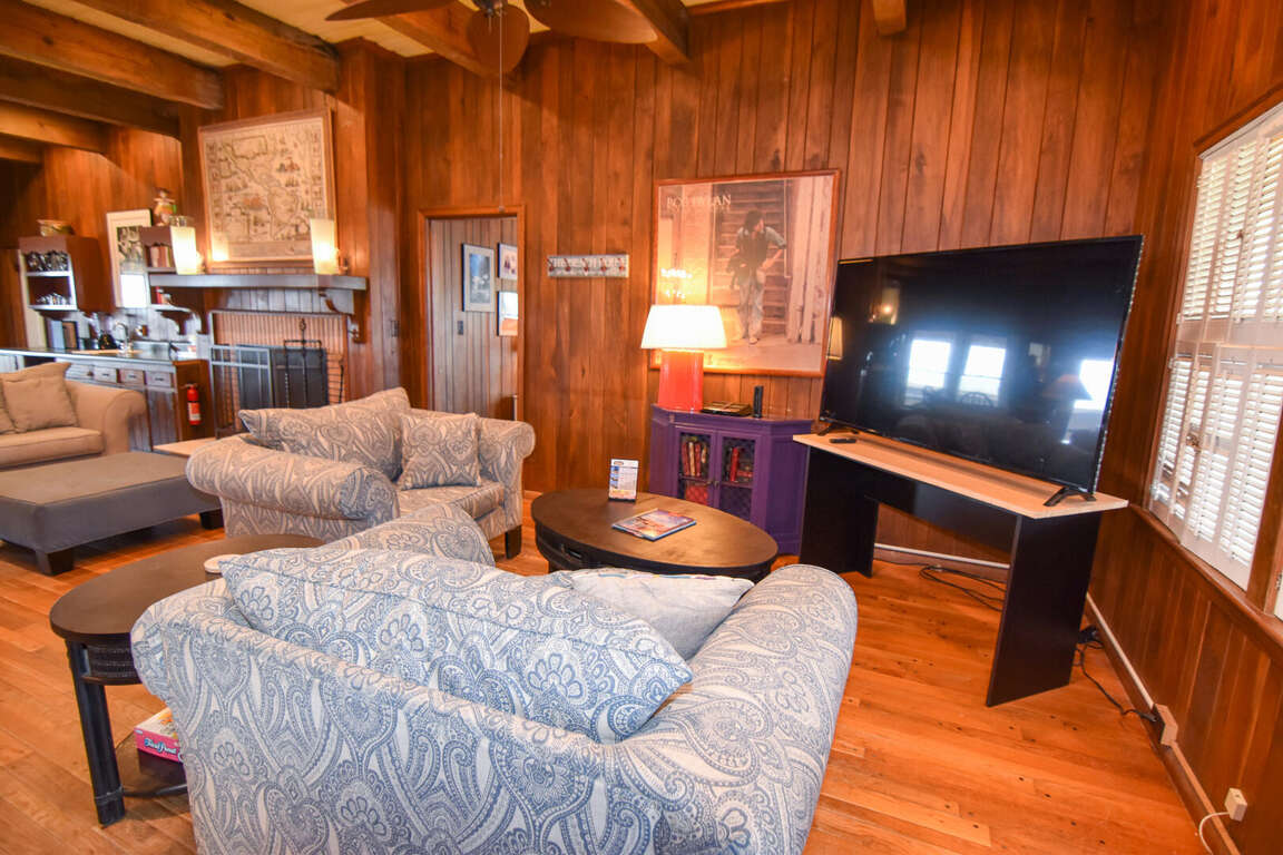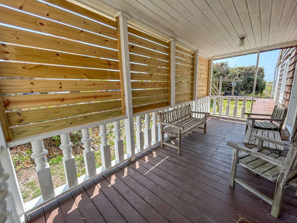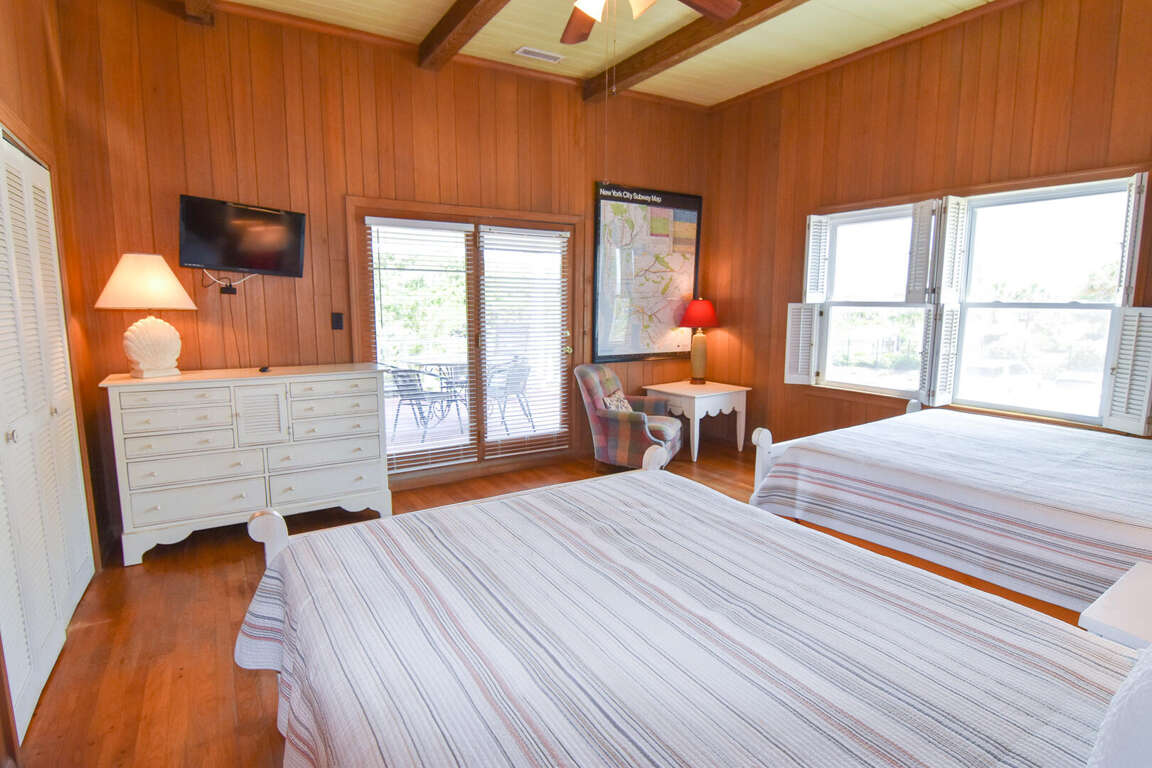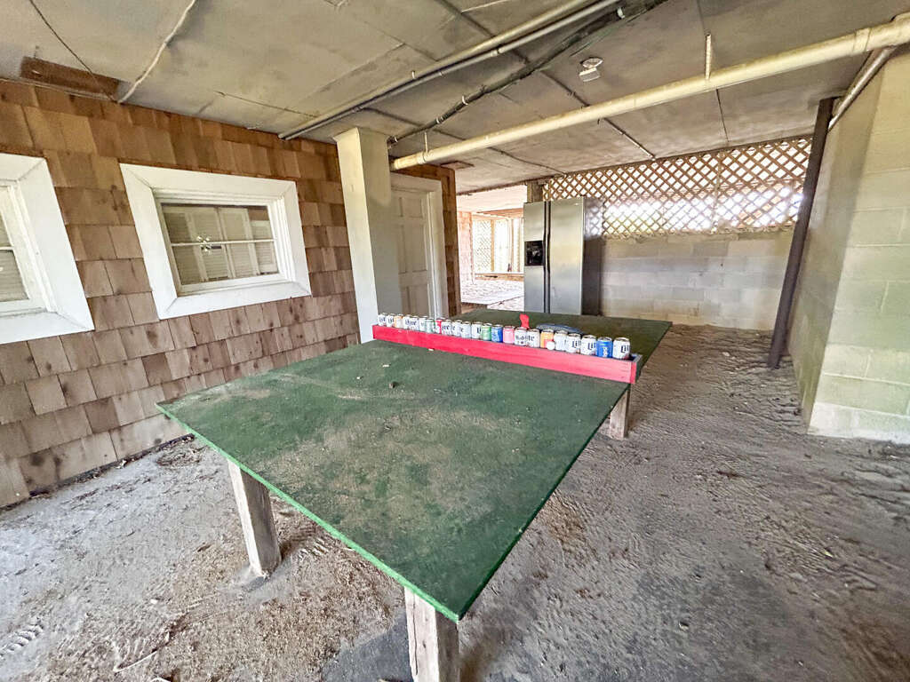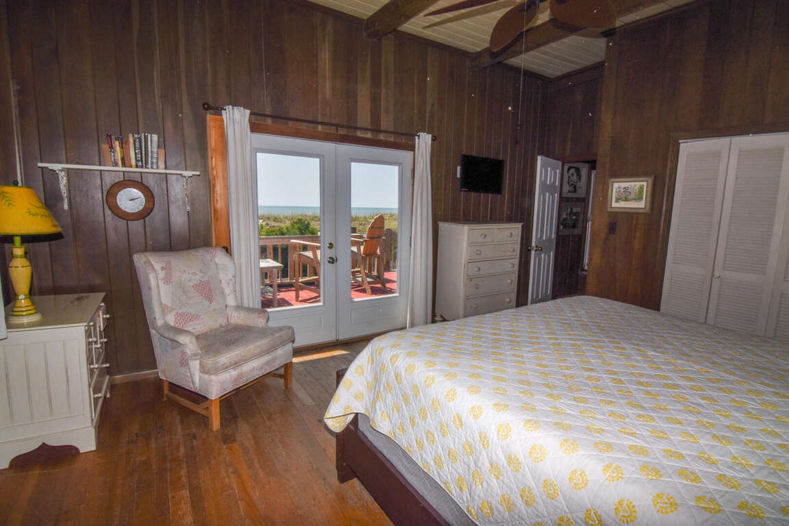North Myrtle Beach oceanfront vacation rental home with private pool, high exposed beams and large open family room. This is a six bedroom, six full bath home with two of the bedrooms located on ground level (one with a queen and private soaking tub, the other with 3 queens). The two full baths have a walk-in shower. These downstairs bedrooms cannot be accessed from the main house entrance Each downstairs bedroom has its own private entrance from the outside. The other four bedrooms are upstairs in the main part of the home, each with a private full bath. The upstairs has a bedroom with a king and twin; a bedroom with a king, a bedroom with 2 queens, and the last with a queen bed.