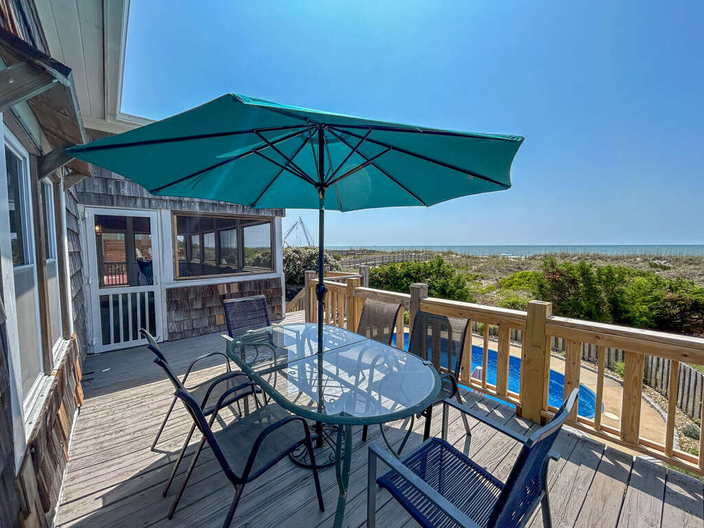 6 bedroom, 6 bath oceanfront home. Sleeps 17. 2 Kings, 7 queens, 1 twin. Private outdoor pool. Separate entrance to downstairs. Tilghman Beach section of North Myrtle Beach. Families only. No student groups. No smoking. No motorcycles. No pets.
