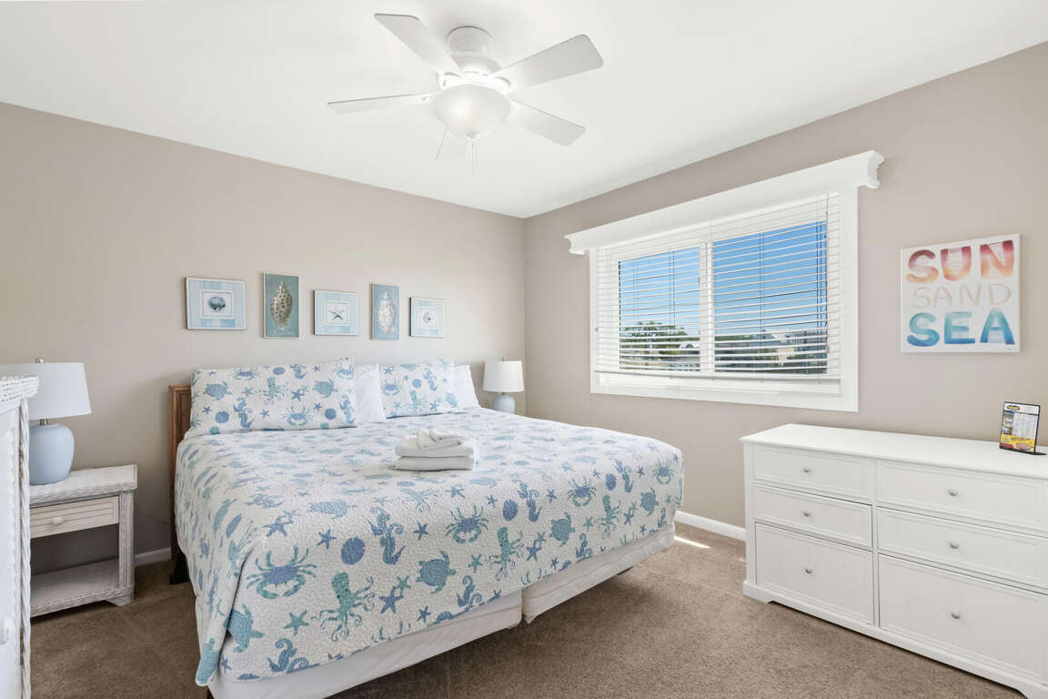 With an array of amenities and features, this vacation condo in North Myrtle Beach, SC offers guests a comfortable and convenient stay by the ocean. The fully equipped kitchen allows guests to prepare meals and snacks with ease, complete with modern appliances and ample counter space. After a day of fun in the sun, guests can relax and unwind in the living area, which features flat-screen TVs for entertainment. Each of the three bedrooms is equipped with its own flat-screen TV and ceiling fan, providing a cozy and private retreat for guests. Additionally, the condo offers wireless internet access, allowing guests to stay connected during their stay. With these amenities and features, guests will have everything they need for a relaxing and enjoyable vacation.