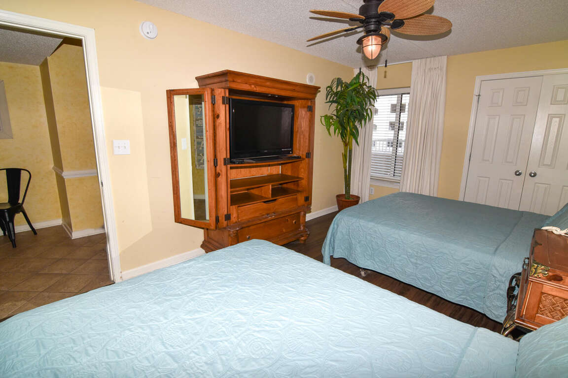 Spacious and Comfortable: With two bedrooms and two bathrooms, Crescent Shores 509 can comfortably accommodate up to 8 people. The master suite boasts a king bed, attached bathroom with a whirlpool tub, and balcony access. The second bedroom offers 2 queen beds and a television. Plus, the condo comes equipped with all the amenities you need for a comfortable stay.