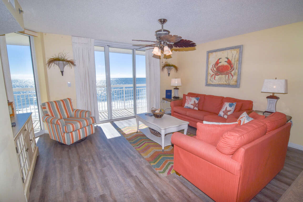 Experience the ultimate beachfront getaway at Crescent Shores 509, where the stunning view and balcony access will make your vacation truly unforgettable.
