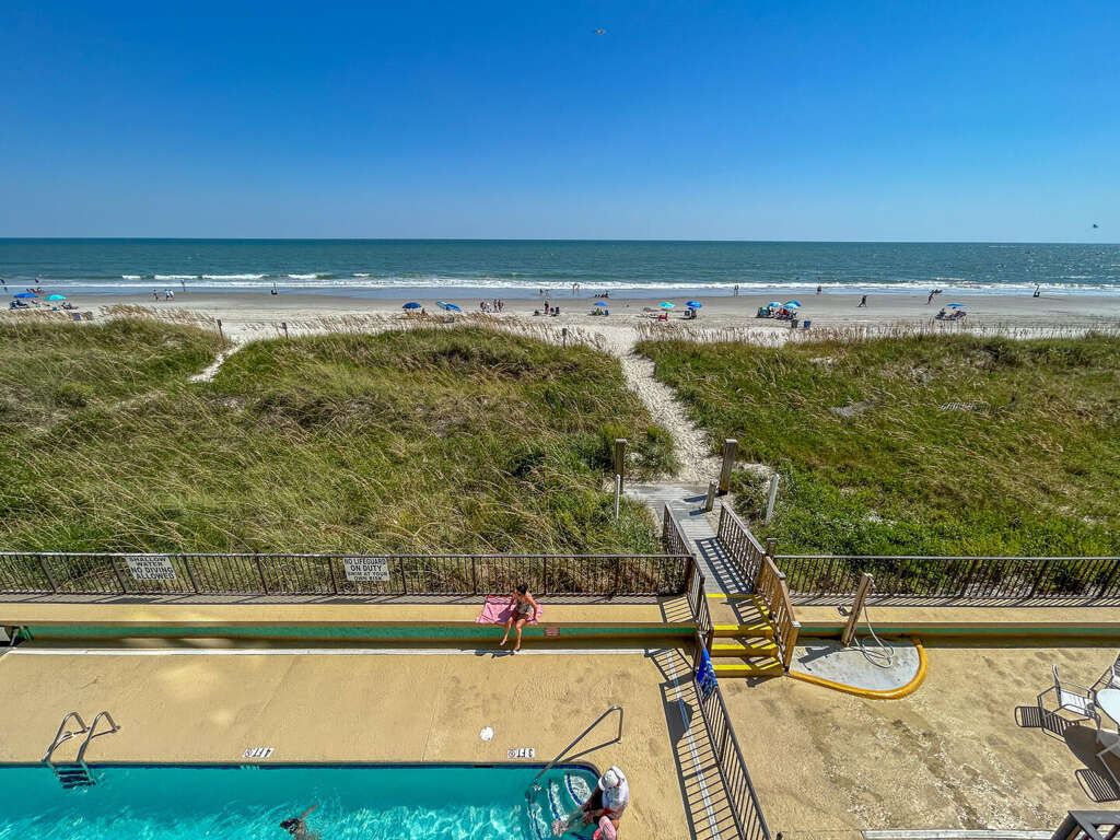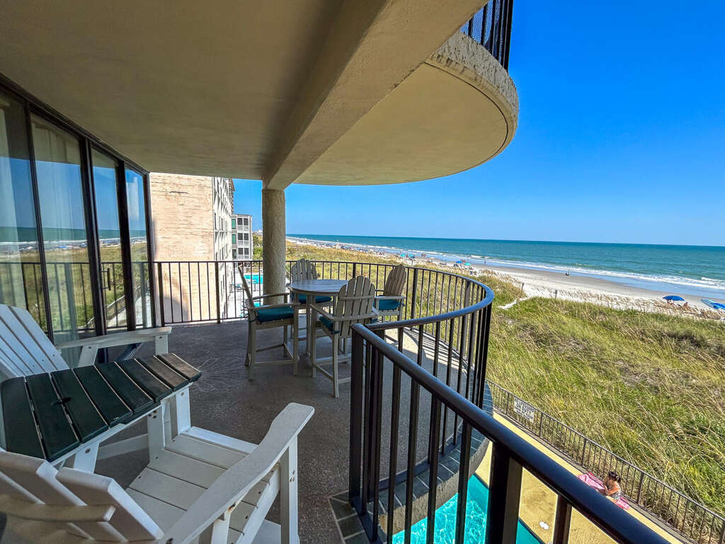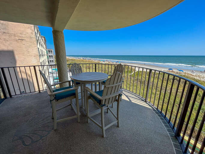 Crescent Beach. 3 Bedroom 2 Bath Oceanfront Condo on the 1st floor with Elevator. Sleeps 6, Outdoor Pool, jacuzzi, non-smoking.