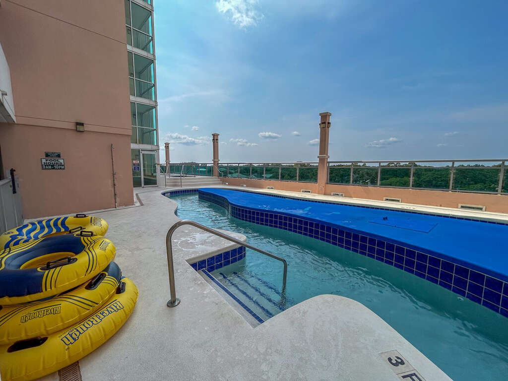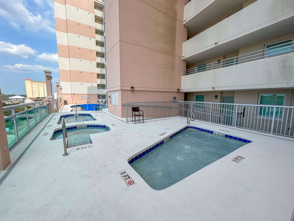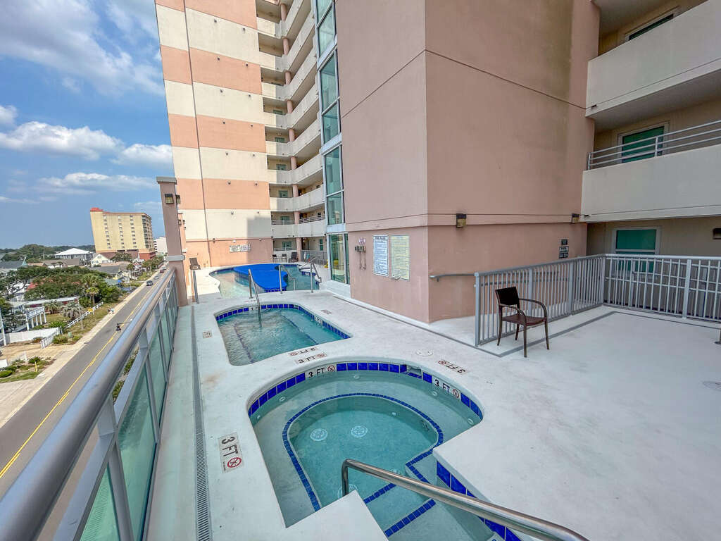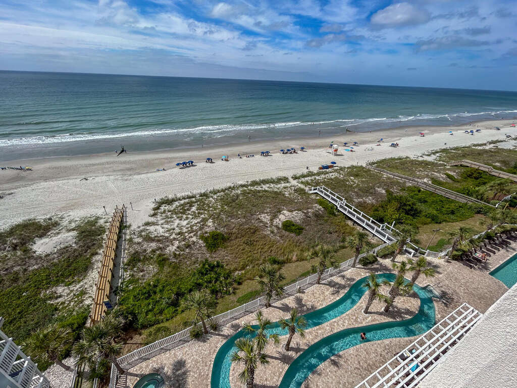 4 bedroom, 3 bath oceanfront condo. WIFI, washer/dryer. Sleeps 8. Indoor, outdoor pool, 2 lazy rivers, kiddie pools, hot tub areas, fitness center with ocean view.
