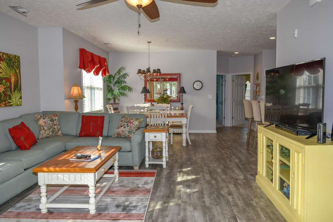 Ocean Keyes 2836 is a spacious 3 bedroom, 2 bath condo located in the gated community of Ocean Keyes. Ocean Keyes is located in the Ocean Drive section of North Myrtle Beach, within walking distance to the ocean and to Main Street where you can visit Main Street Shops and the fabulous family entertainment at the new Greg Rowles Legacy Theatre. This North Myrtle Beach rental is on the 3rd floor (with an elevator) and sleeps 8. Each bedroom has a queen bed and TV. The master bathroom has a tub and shower combination. The second bathroom has a shower stall. There is a fully equipped kitchen (with a Keurig coffee maker), washer/dryer, large living and dining area with a view of the pool from the screened balcony. The living area also has a TV and a queen sleeper sofa for your convenience. This condo has WIFI, 3 DVD players, and a 60" 4K TV in the living area. Ocean Keyes has an outdoor pool, hot tub, fitness room, tennis court, kiddie pool, and grilling/picnic area.