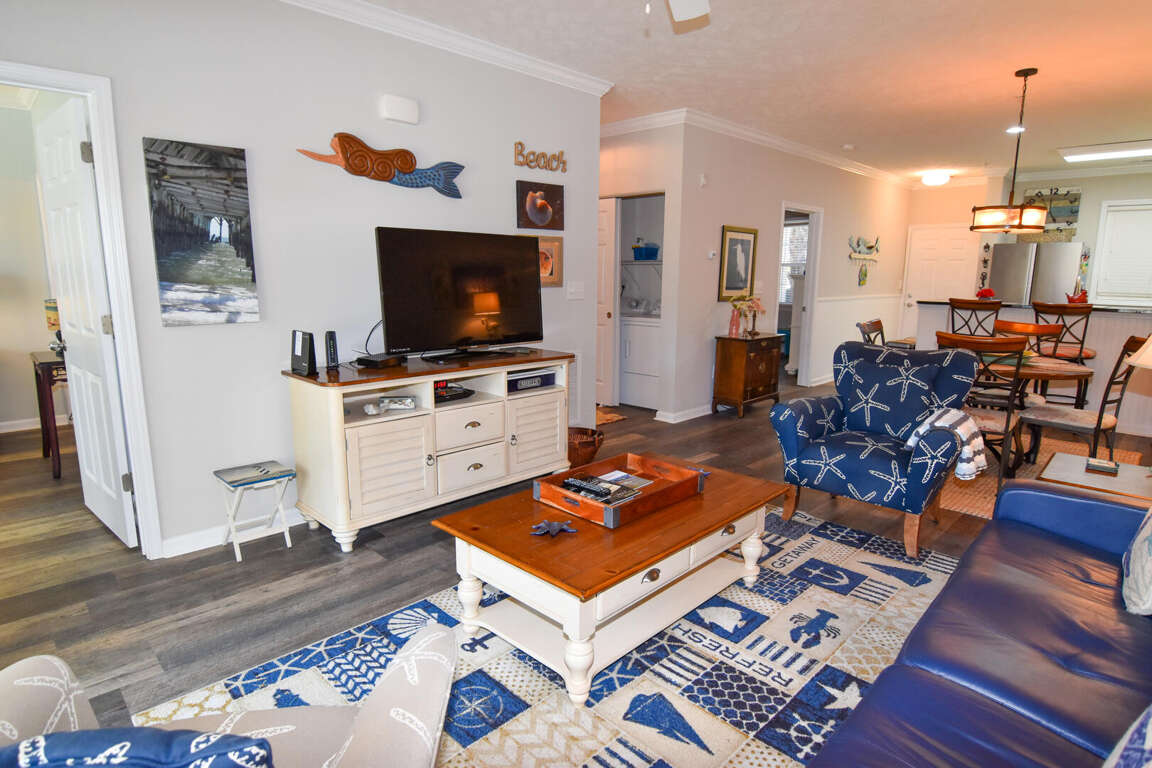 Ocean Keyes 2202 is a 2 bedroom, 2 bath condo located in the gated community of Ocean Keyes in North Myrtle Beach. This vacation rental is on the first floor with a view of the pool and entertainment area. The ocean is just a short walk away ( .3 of a mile) and is one block off of Main Street, Ocean Drive, where shopping, restaurants, and nightlife await you. Enjoy shopping at Main Street Shops and fabulous family entertainment at the new Greg Rowles Legacy Theatre on Main Street. Ocean Keyes is also only a short drive from some of the more popular attractions such as Barefoot Landing and Broadway at the Beach!