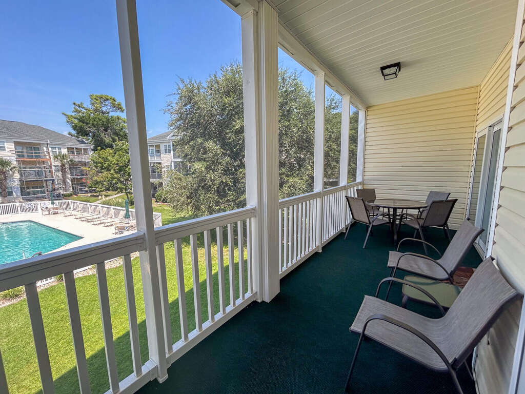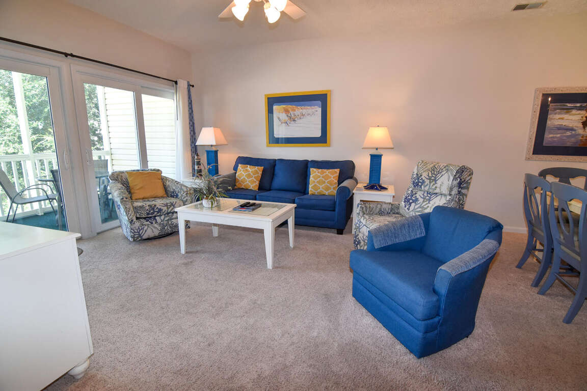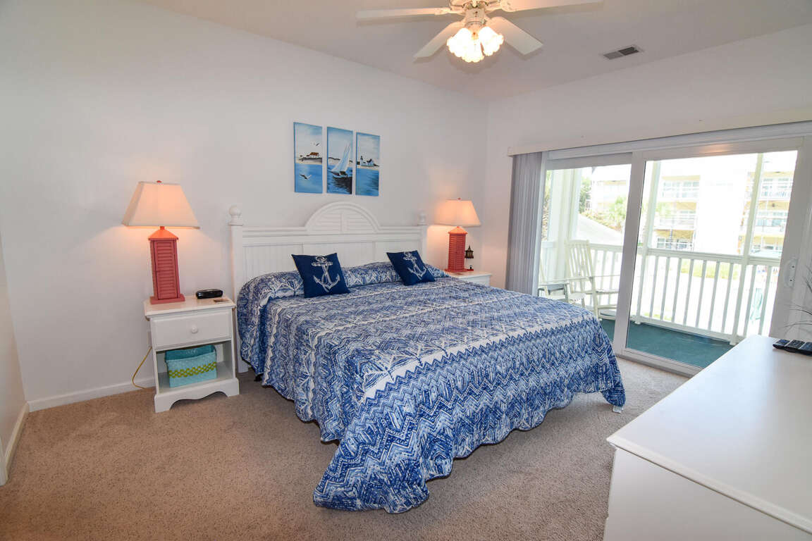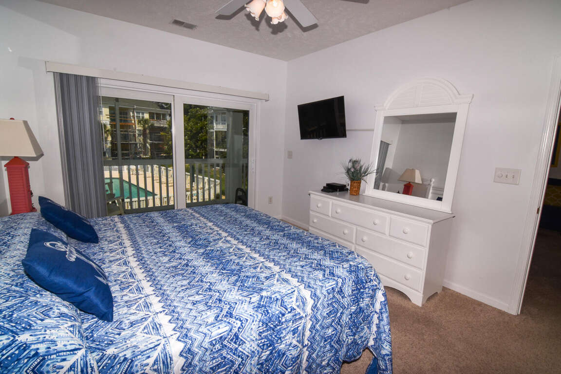 Ocean Drive. 3 bedroom, 2 bath condo in gated community. Sleeps 8. King bed, queen bed, 2 double beds. Walking distance to ocean. 2nd floor. No elevator. Outdoor pools, hot tubs, fitness center, tennis court. No pets. No motorcycles. No smoking. Families only. No student groups. GOLF CARTS NOT ALLOWED WITH THIS RENTAL.