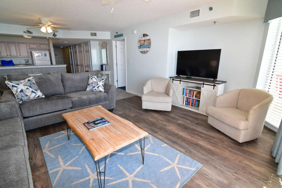 Spacious living area: In addition to the bedrooms, the condo features a generous living area where guests can relax and socialize. With plenty of seating options and a welcoming ambiance, it's the perfect spot to unwind after a long day of exploring the beach.