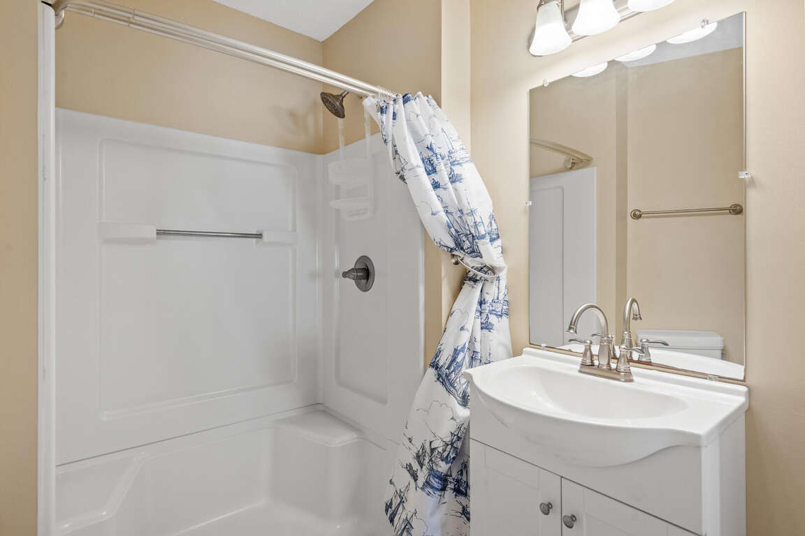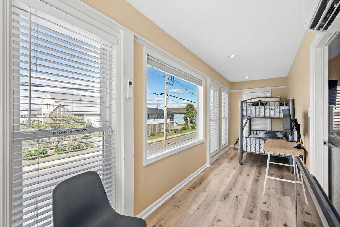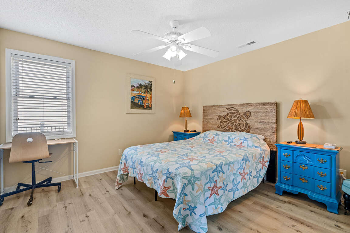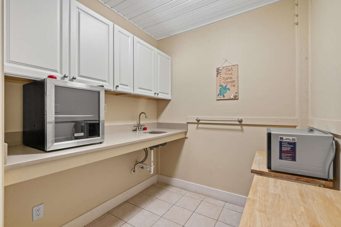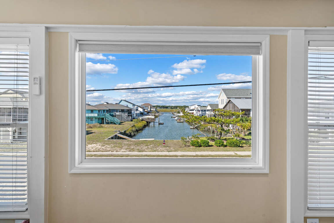 Off the main living area is the master suite with a queen bed, 32" smart TV, large walk-in closet and full bath with washer/dryer. On this level you also have the use of the Carolina room with a twin bunk bed (2nd bedroom), 32" smart TV with gaming console (Nintendo Wii), and a sitting area overlooking the Channels with a big picture window!