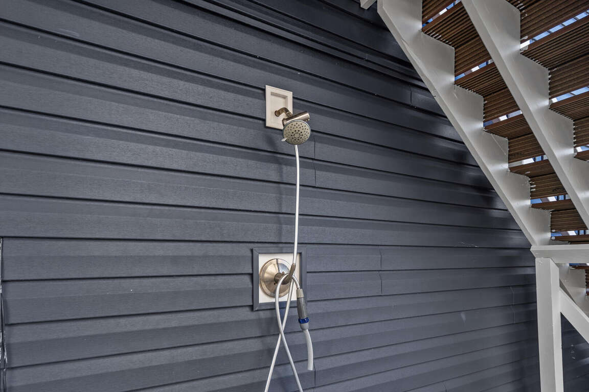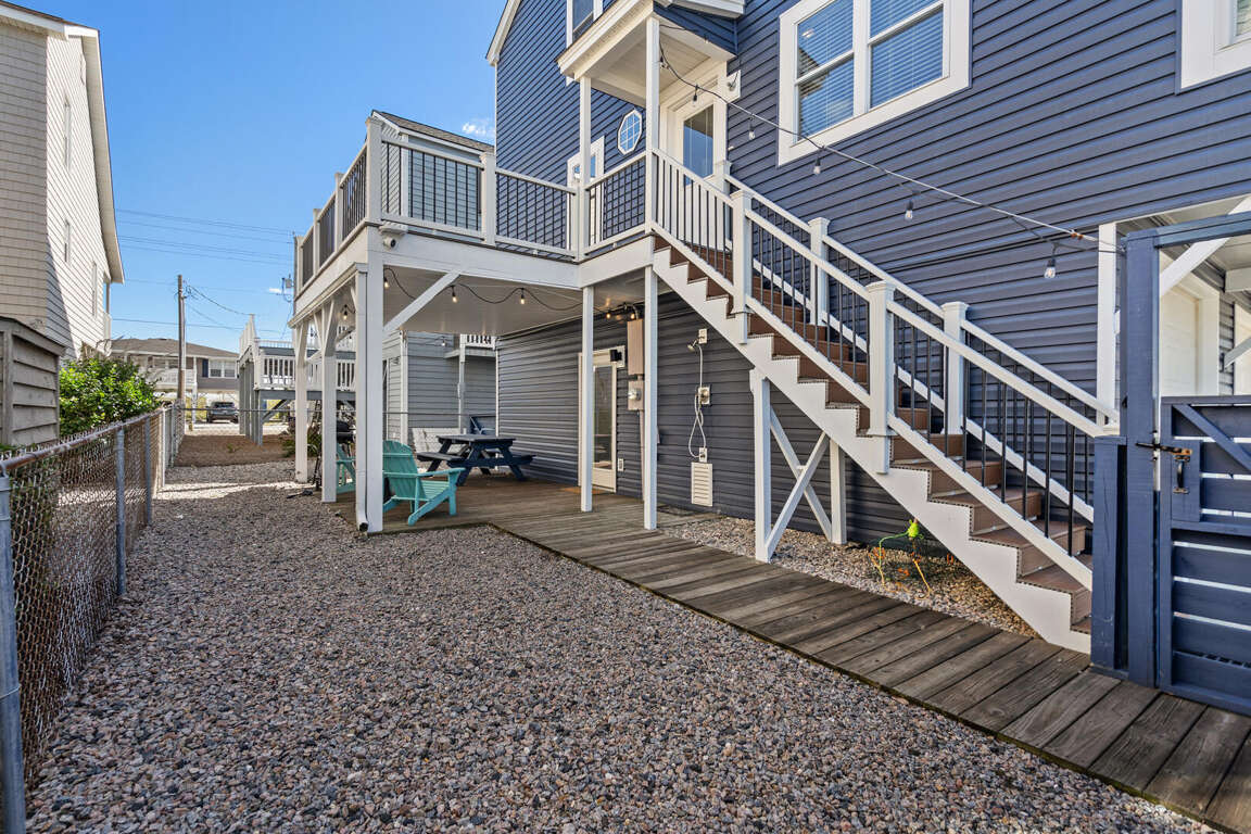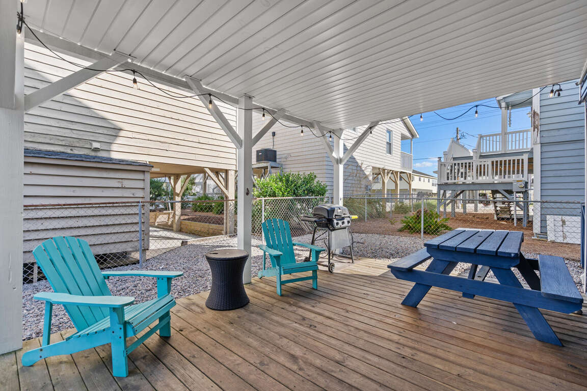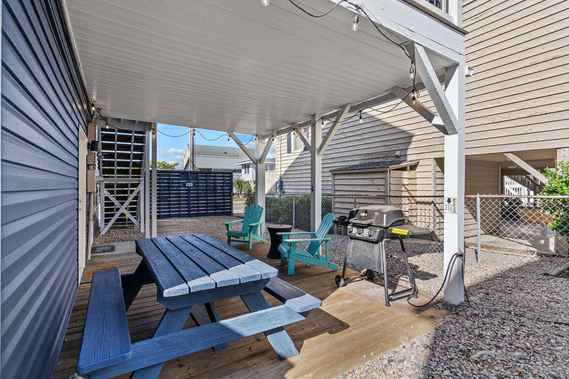 Outside you will find both a full sun lounging deck off the main floor and beneath it is a fully shaded hangout spot with a fully fenced yard, gas grill and picnic table and hammock chairs, outdoor shower and even a shower for your pet!