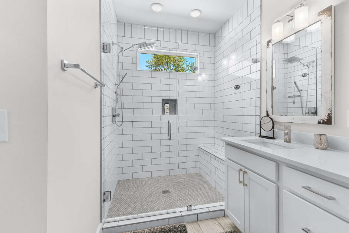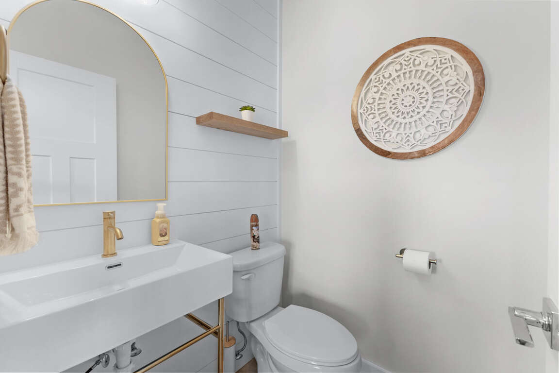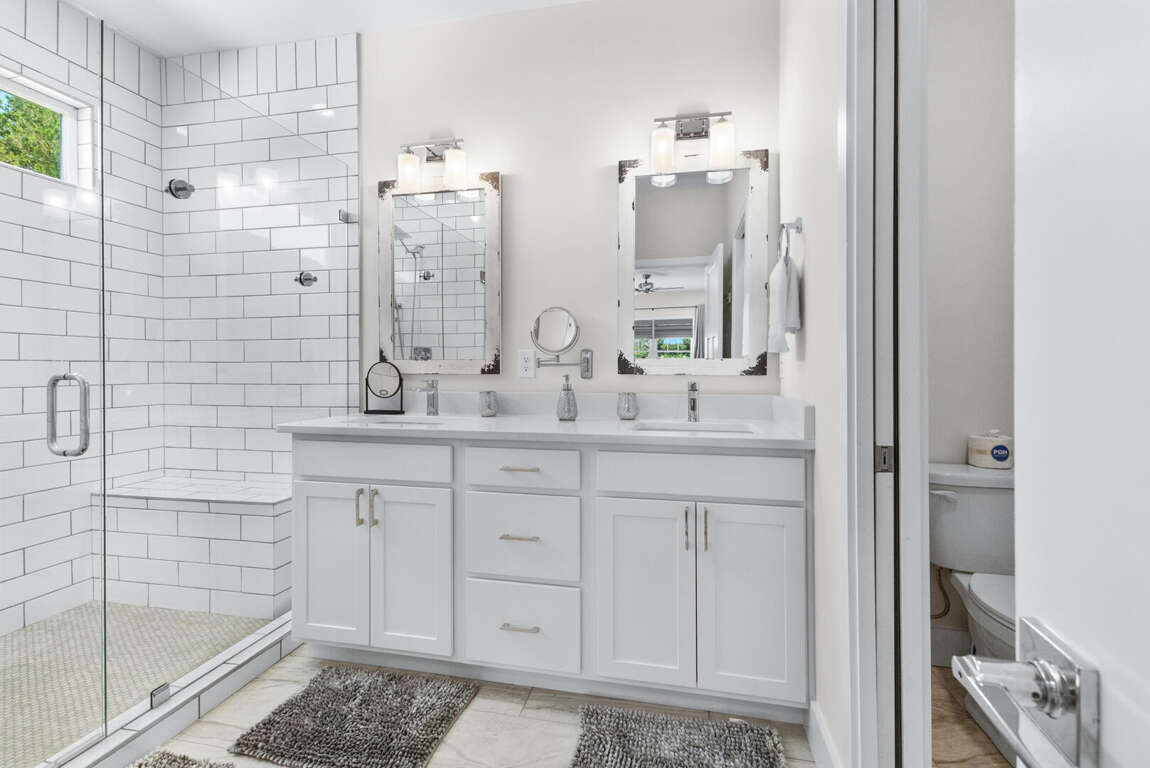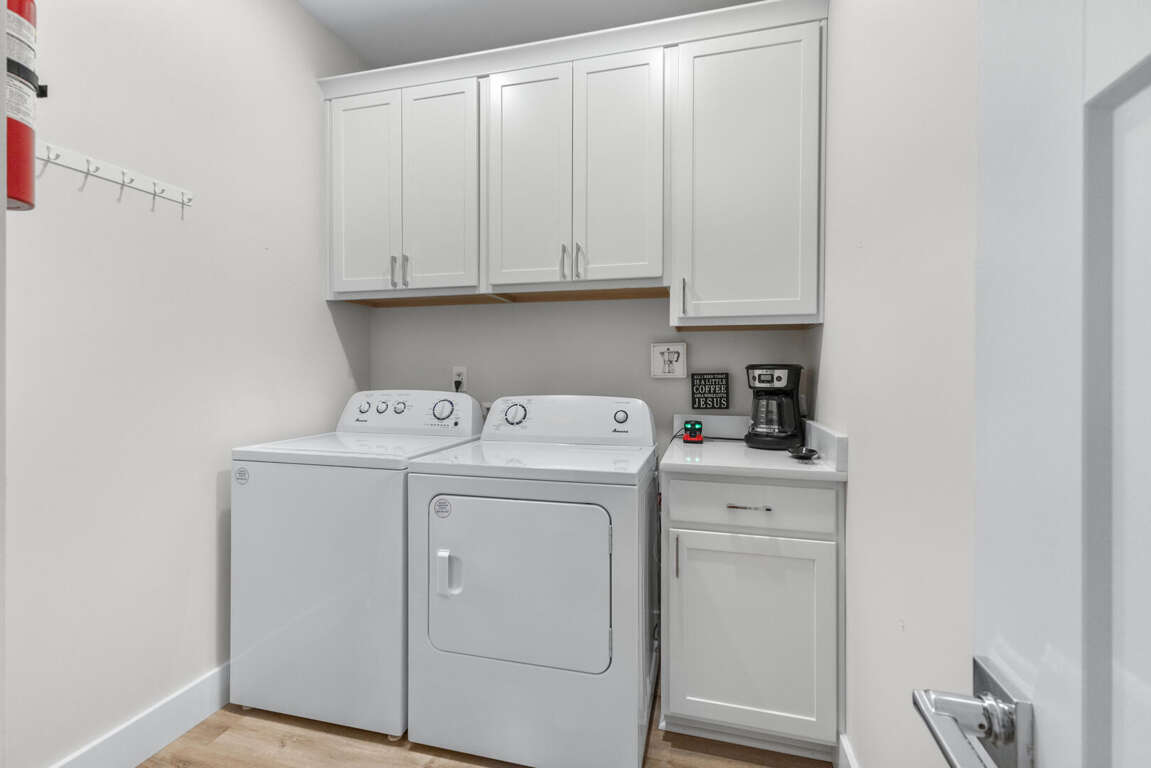 On the lower floor are the other two bedrooms. This master suite has a king bed, Smart TV, and bathroom with a tub and shower combination. The other bedroom has a queen bed, full size bed, Smart TV, and bathroom with tub and shower combination. Also on this floor is the washer and dryer. WiFi is free. An outside shower with a hose is available for rinsing off after a day at the beach. Gather around the outdoor sitting area with table and chairs to plan your next vacation day.