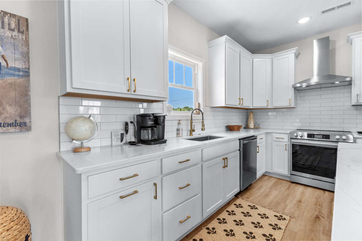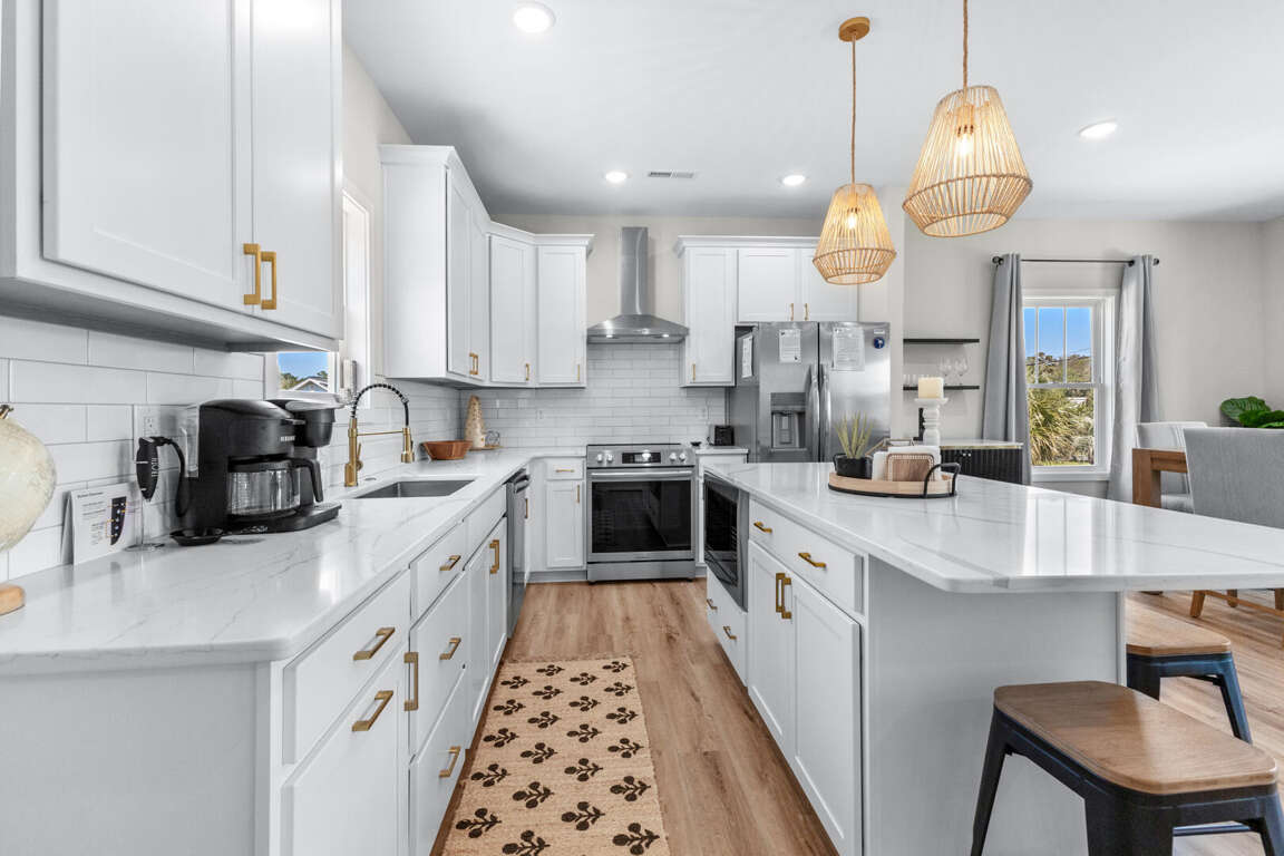 9th & Tiffany is a newly built 3 bedroom, 3.5 bath home located at 717 9th Avenue South in North Myrtle Beach. This home away from home beauty of a beach vacation rental is comfortable, clean, and adorned with new furniture and appliances. 9th and Tiffany is only a short walk (.35 miles) from the brilliant shores of the Atlantic Ocean. Golf carts are allowed on this property. With a golf cart rental available close by, driving along the back roads of Ocean Drive will quickly get you to the beach and other close fun spots to enjoy. There are several beach access areas close by, some within walking distance of this rental.