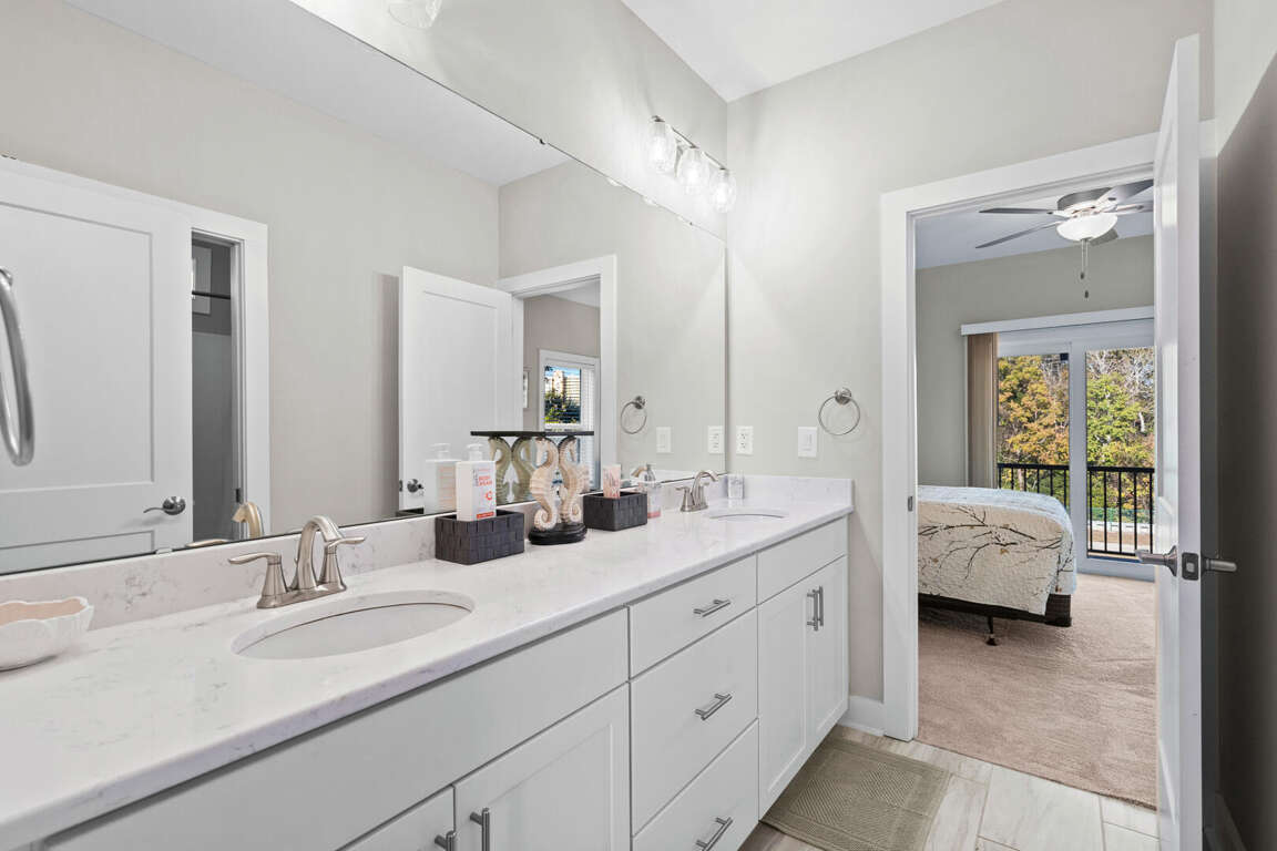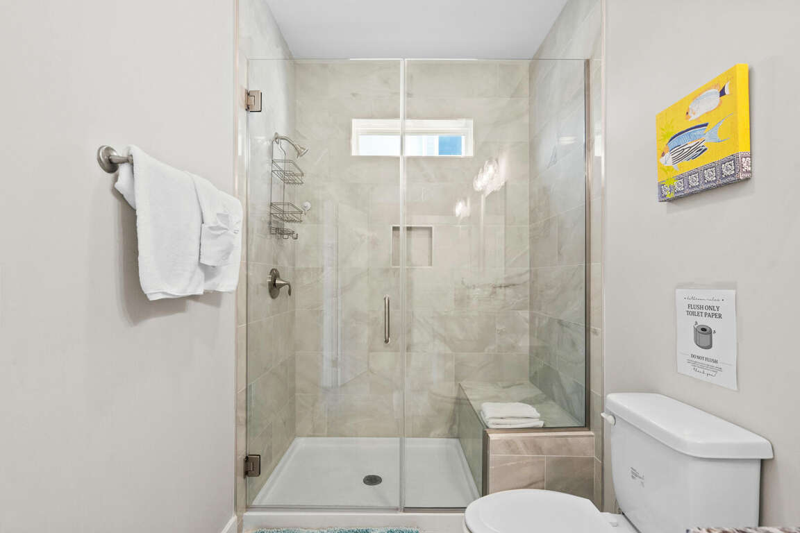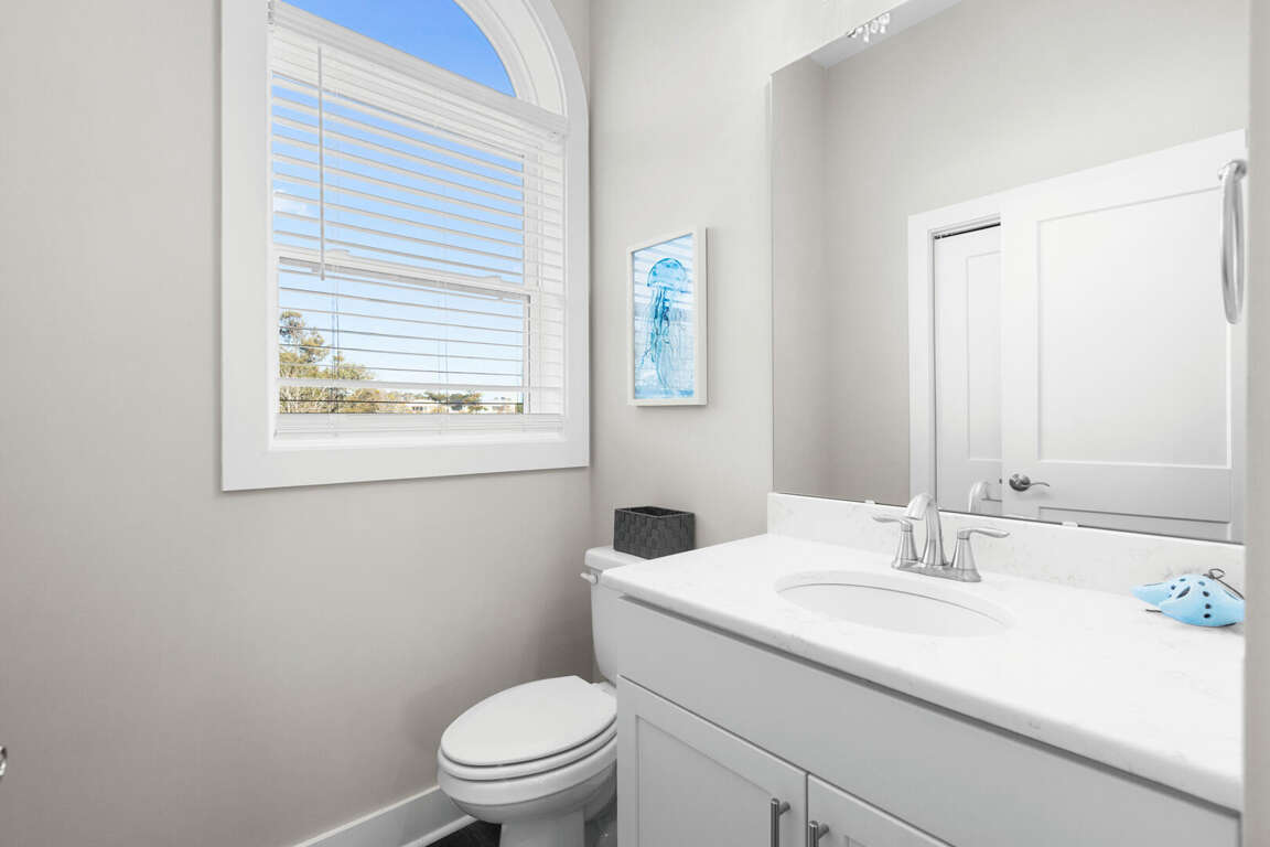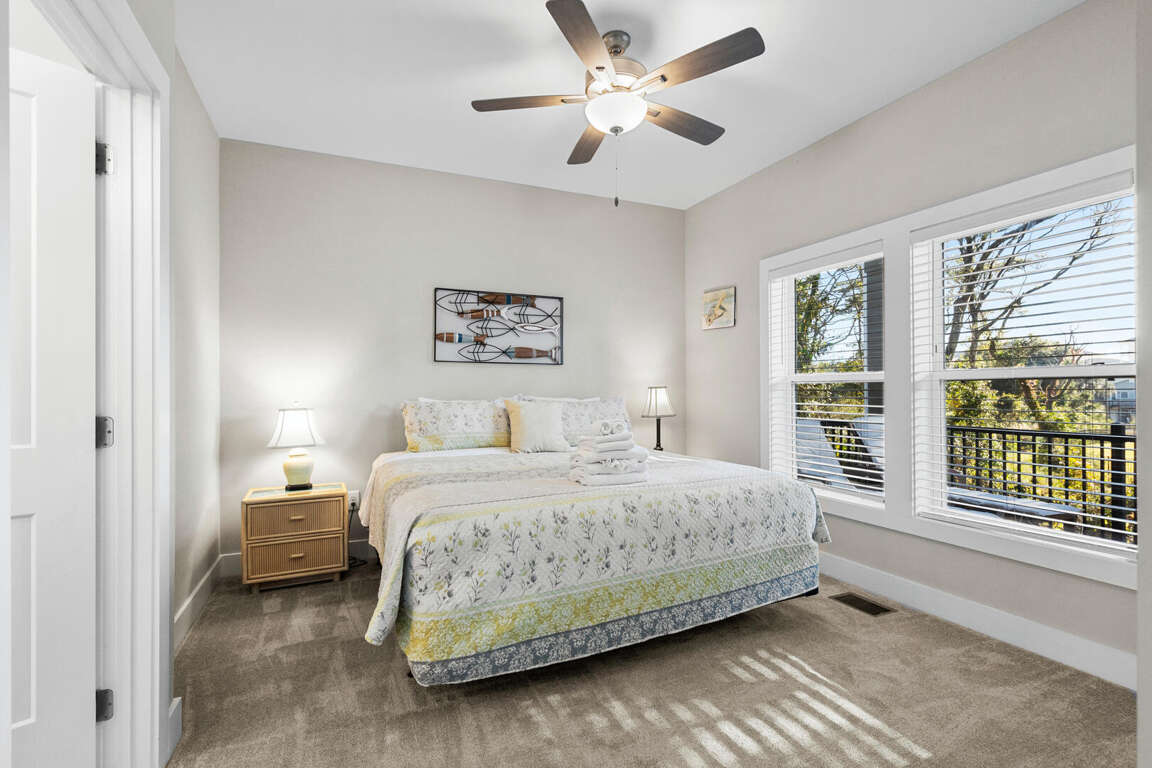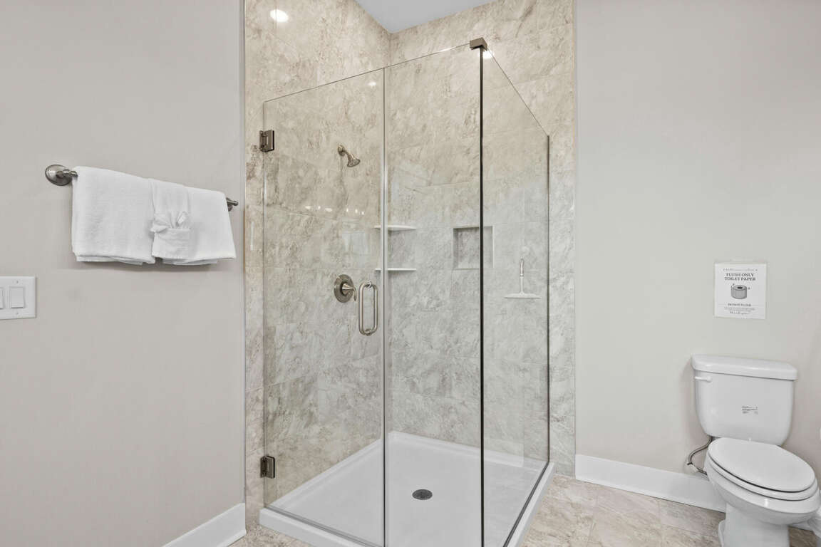The North Myrtle Beach vacation rental has 4 bedrooms. There are 3 bedrooms on the 2nd floor. There is a jack and jill bathroom with a tub and shower combination connecting a queen bedroom and a king bedroom. There is another bedroom with a queen bed and a bathroom with a walk-in shower. A bonus living area on the 2nd floor has a PS4. Guests should bring their favorite controllers and games for the PS4.