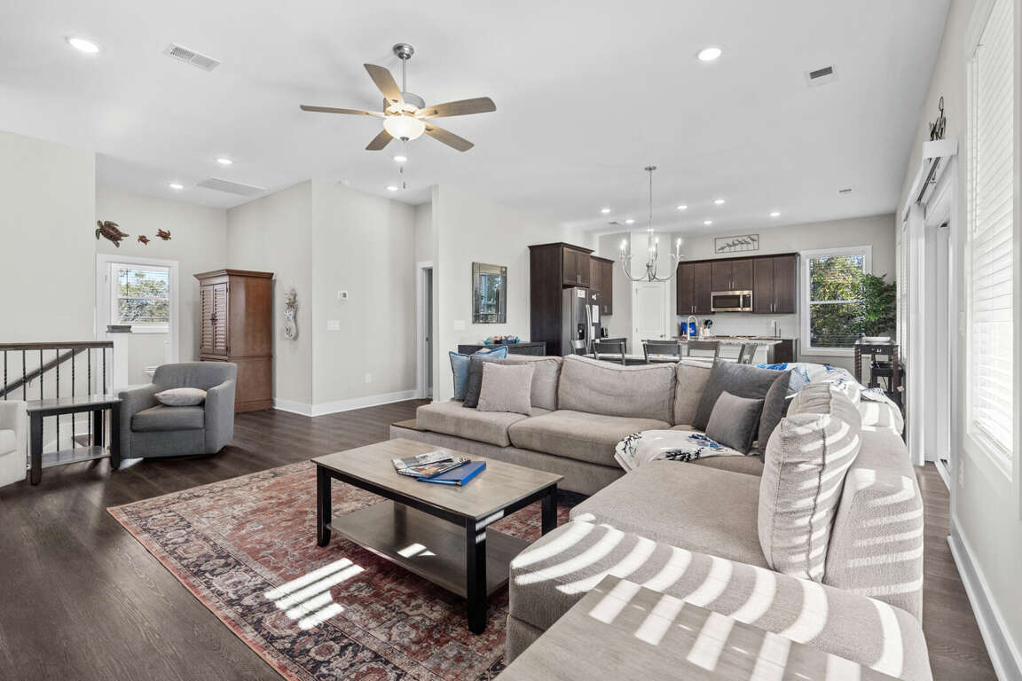 PET FRIENDLY! 4 bedroom, 3.5 bath multi-level home walking distance to beach. This home sleeps 8 and has a private pool. Stairs are required to access. Covered balconies, Smart TVs, fireplace, PS4, washer, dryer, free WiFi, keyless entre, ring doorbell security camera. No smoking, no pets, no parties, events, must be 25 years of age to rent. Families only.
