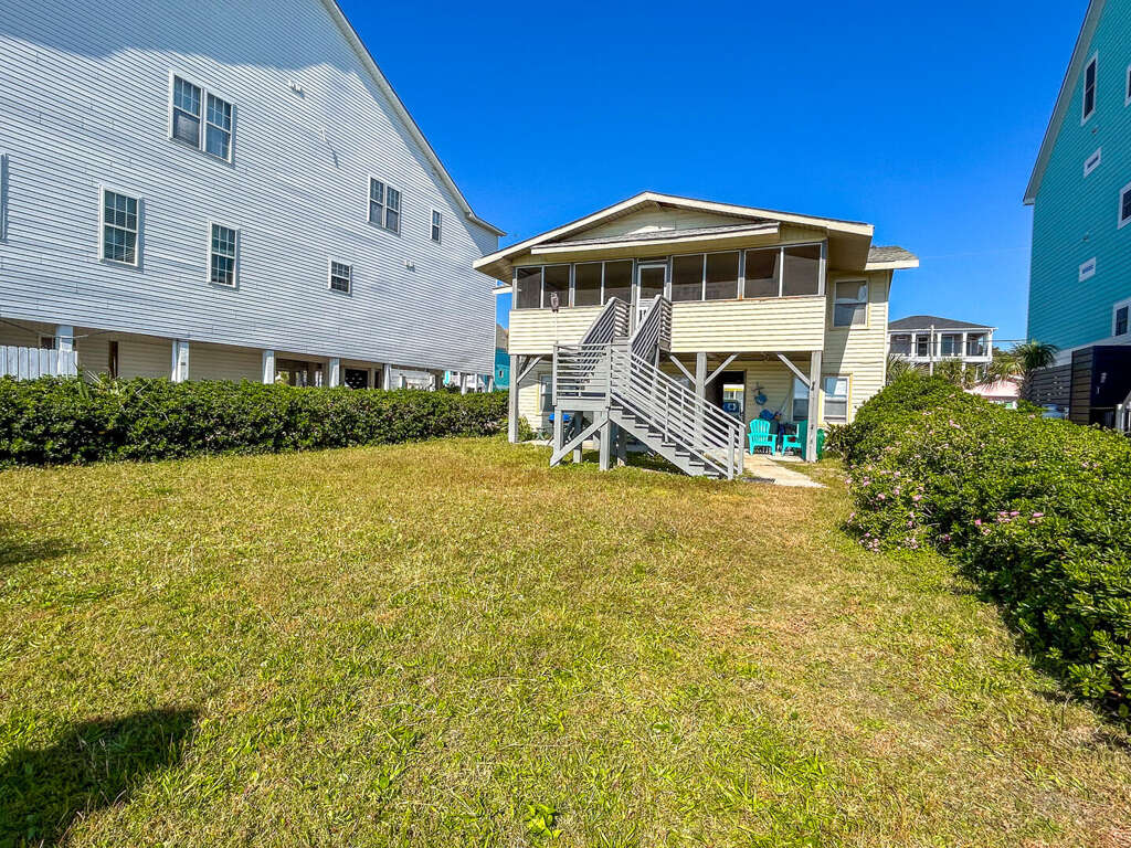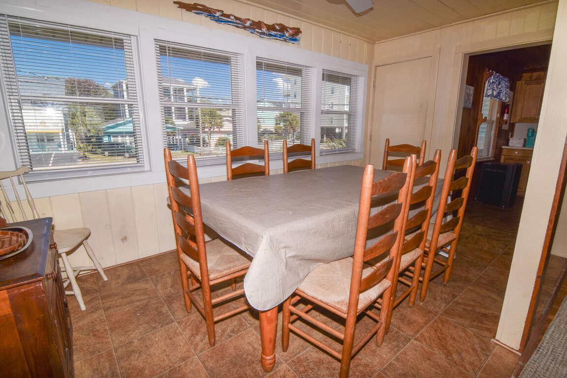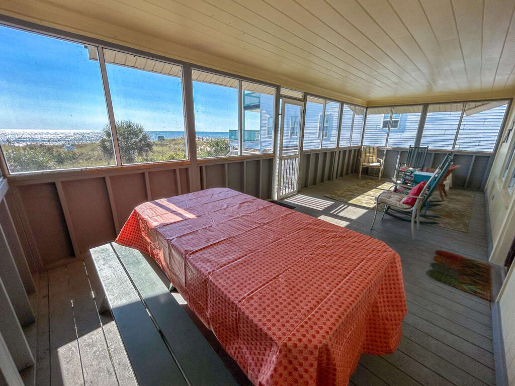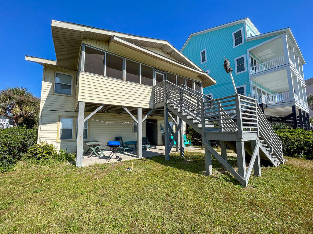 5 bedroom, 3.5 bath oceanfront home. 3 queen beds, 2 double beds, 2 twin beds. Sleeps 12. Screened oceanfront porch. Grilling Area. 2 bedrooms downstairs not accessible to upstairs (private entrance). Streaming only for TVs. Families only. No student groups. No pets. No smoking. No motorcycles.