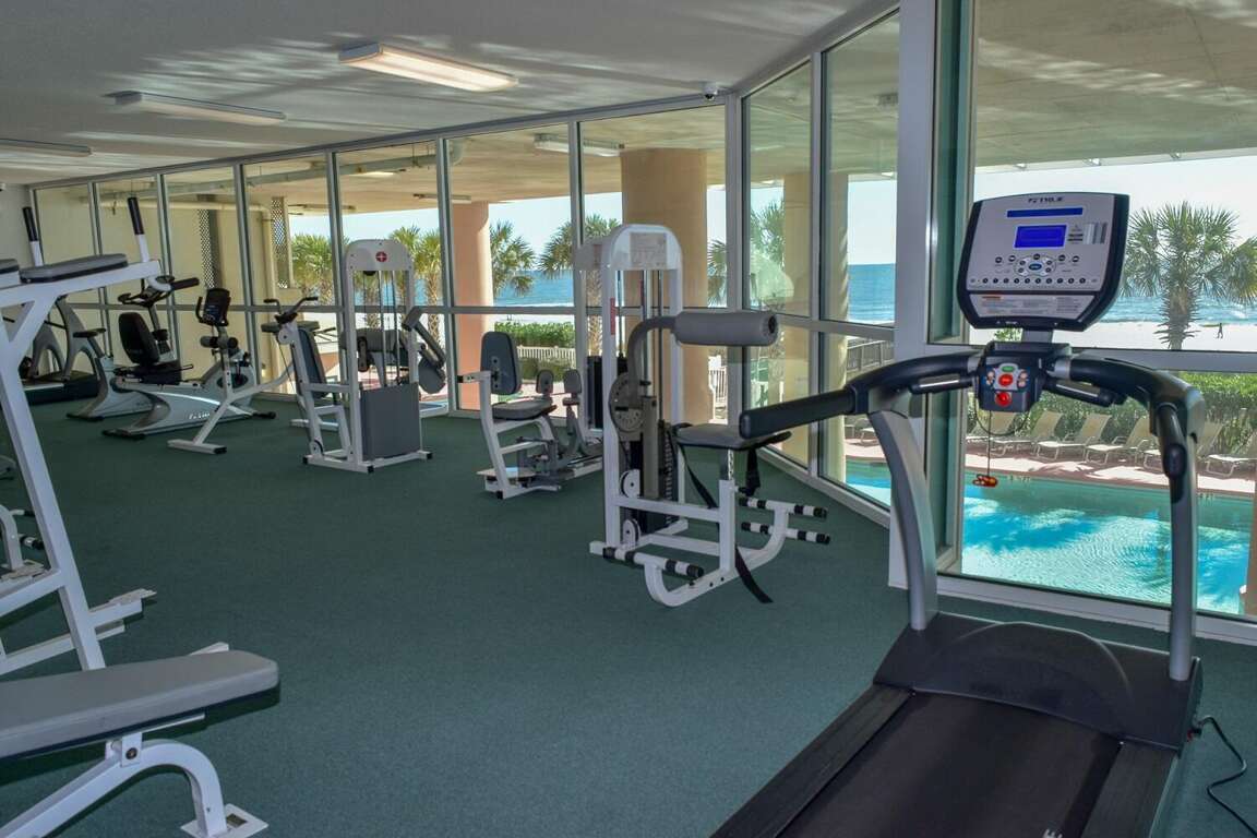 The 6th-floor courtyard is a standout feature, offering a sun deck with loungers, a hot tub, and an elevated lazy river where you can relax while enjoying panoramic views of the ocean. Fitness enthusiasts will appreciate the fully equipped fitness center, which overlooks the pools and beach, providing a beautiful backdrop for workouts. Please note that the parking garage has a 6 ft. 8 in. clearance, and your stay includes 2 parking passes.