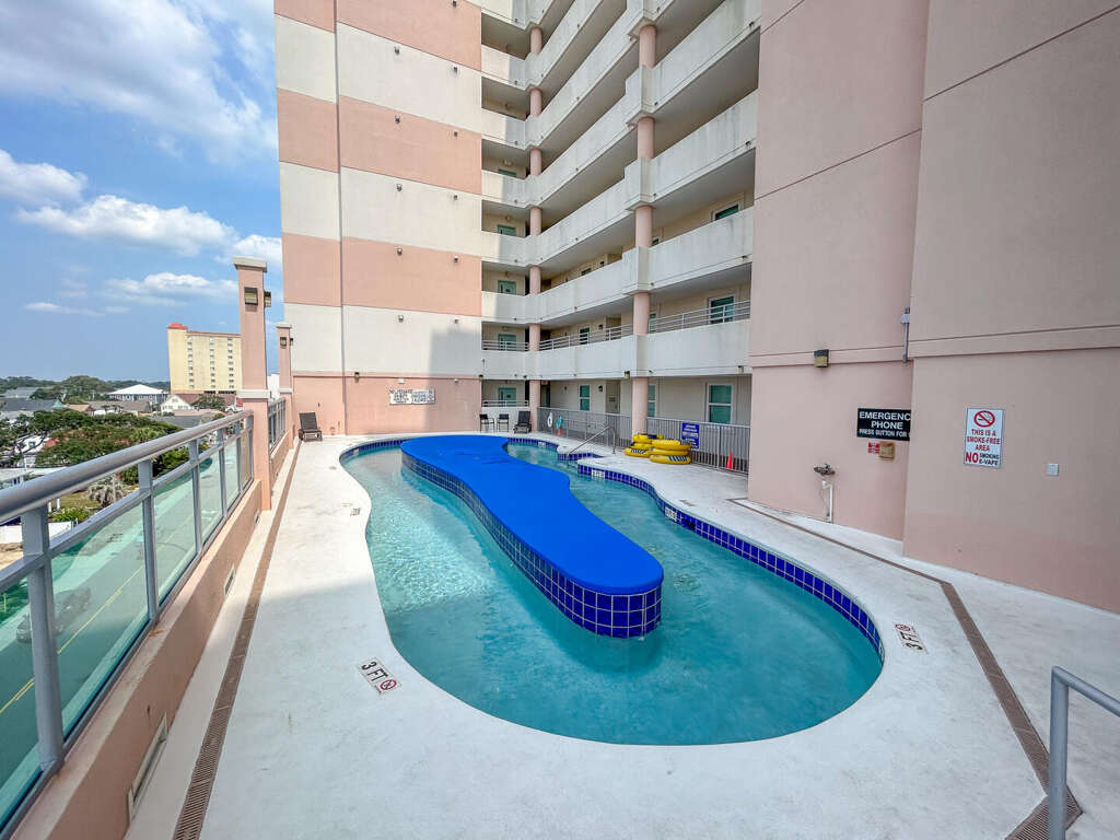 Crescent Keyes is a 14-story oceanfront resort designed with both relaxation and fun in mind. Guests have access to covered parking and elevators, making arrival and departure simple. The resort’s water amenities are a highlight: