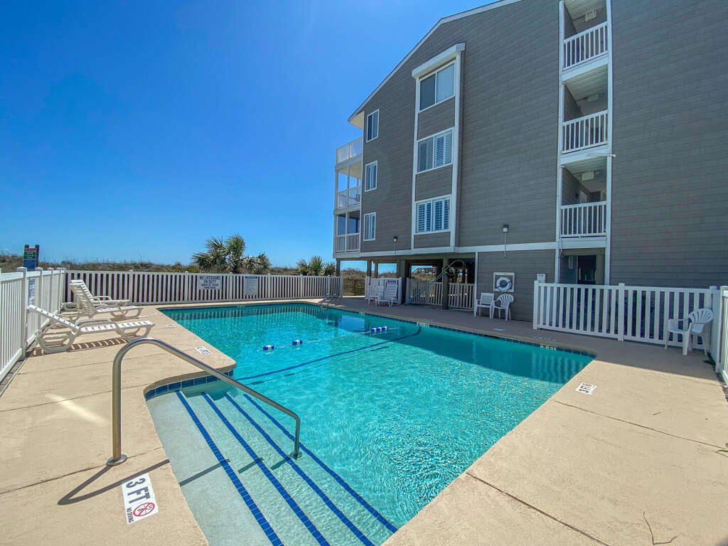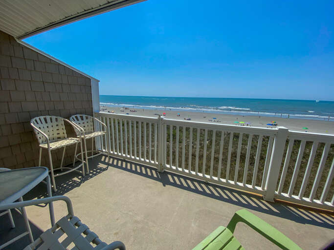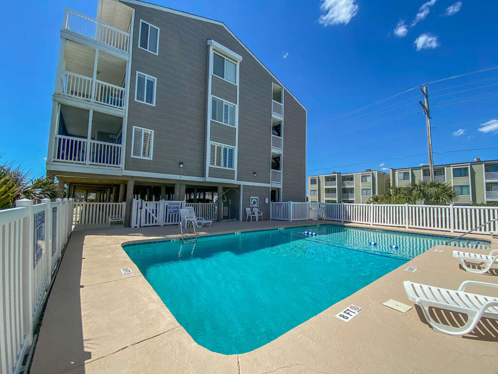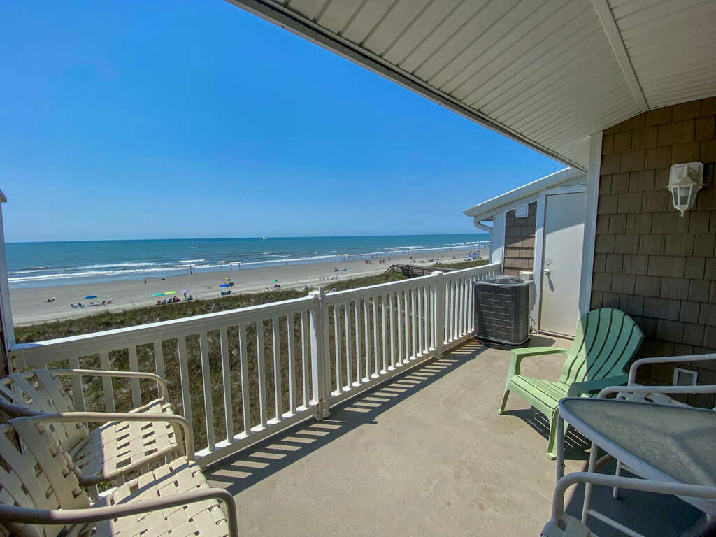 Cherry Grove. 2 bedroom, 2 bath oceanfront condo. Sleeps 6. Queen bed, 2 twin beds, queen sleeper sofa. 3rd floor. No elevator. Outdoor pool. Grilling area. No pets. No motorcycles. No smoking. Families only. No student groups. 2 parking spaces provided.