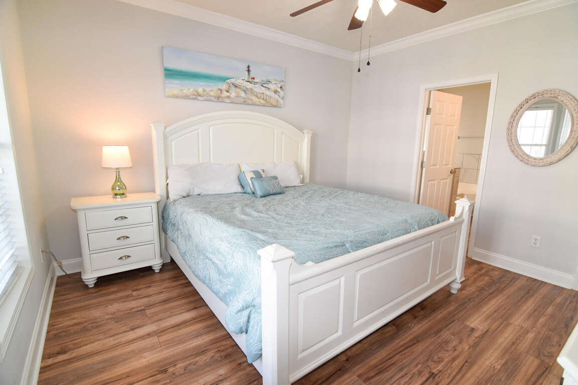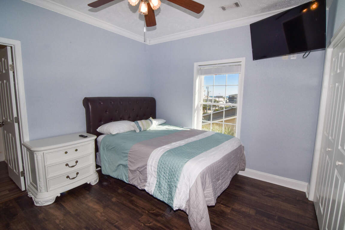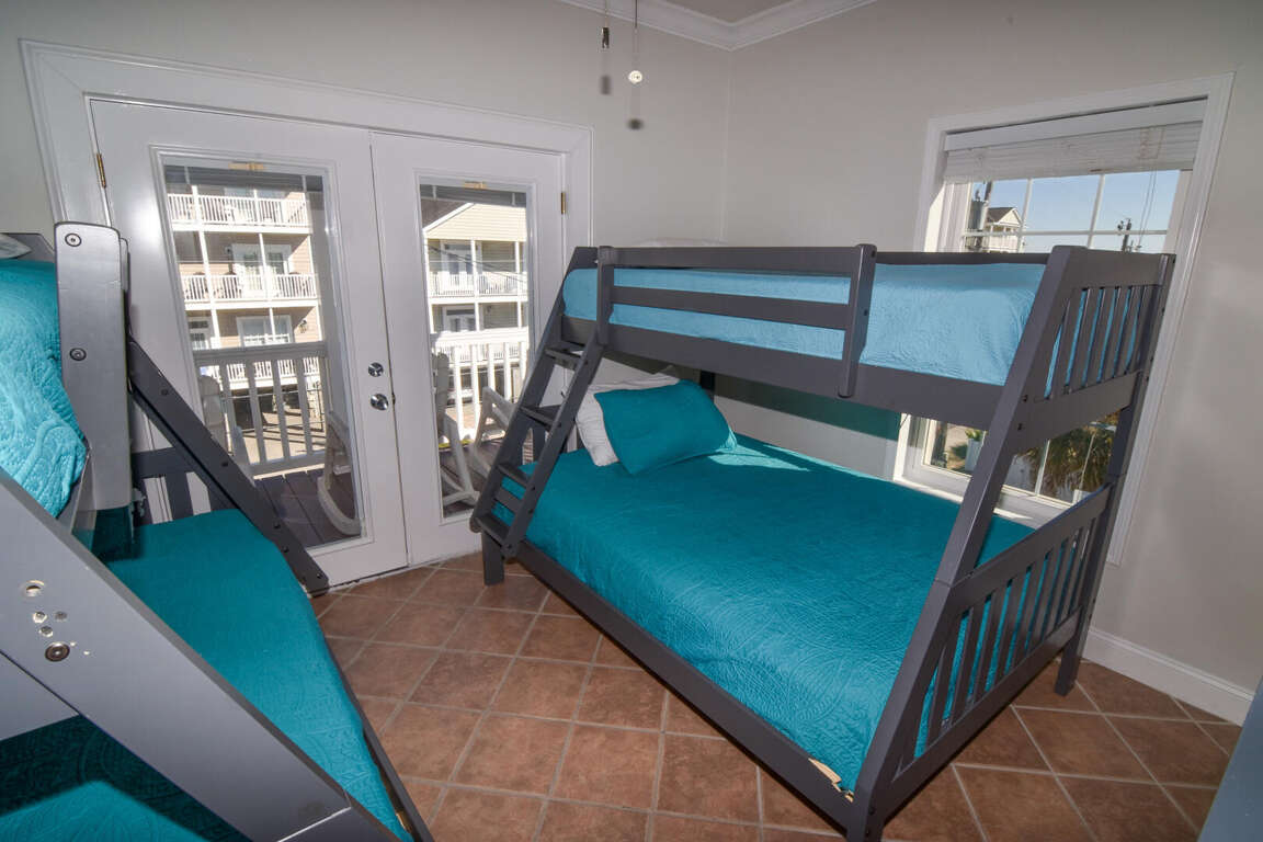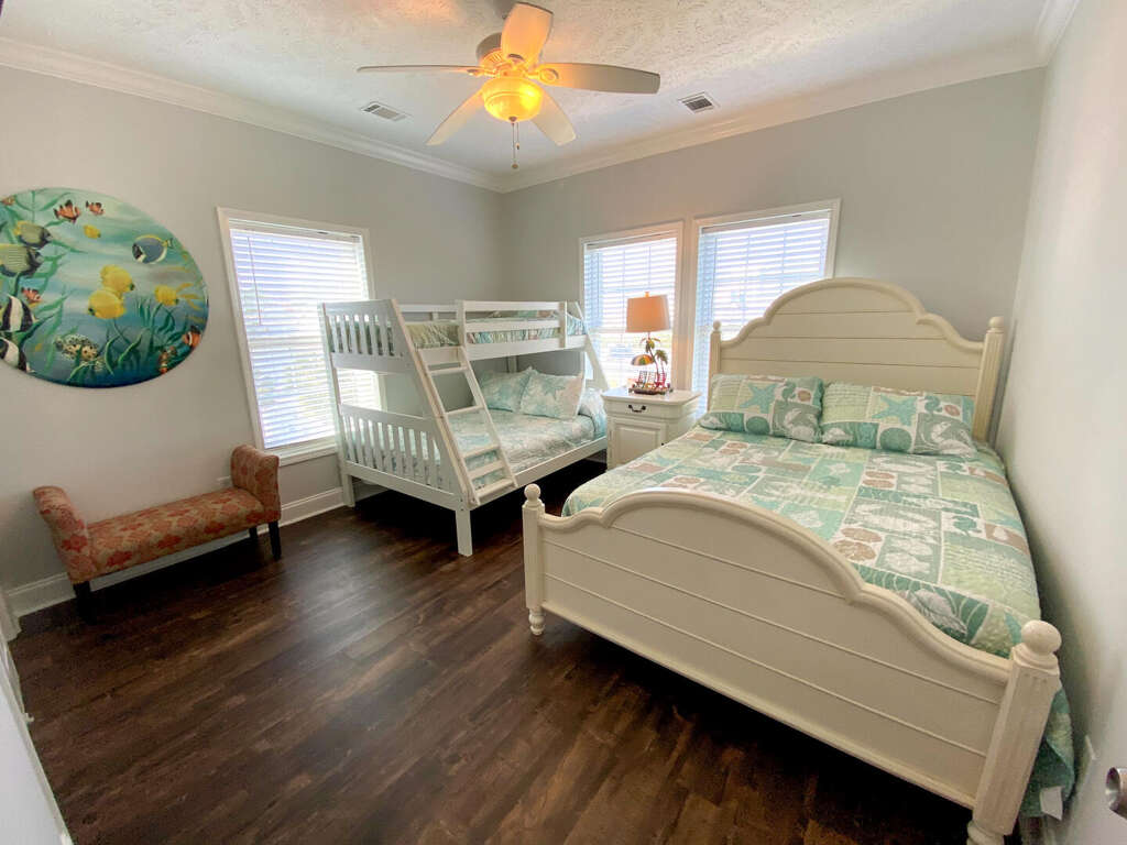 The spacious first floor has a living room with a 65" flat screen TV. The open floor plan makes visiting with the family so much more enjoyable as the kitchen, dining area, and living room area flow into one. On the first floor is a bedroom with a king bed and a bedroom with a queen bed. The other 5 bedrooms are on the 2nd floor. There is a bedroom with 2 queen beds, a bedroom with 2 twin over full bunks, a bedroom with a queen bed, a bedroom with a queen bed and a twin over full bunk bed, and the last bedroom has a king bed. This North Myrtle Beach vacation rental home is just 1/2 block from the ocean with ocean views from 2 balconies where you can feel the breeze come off of the Atlantic. Relax as you enjoy your morning coffee or take an afternoon nap and wake up to a beautifully painted sunset. This North Myrtle Beach vacation rental home is perfect for large families.