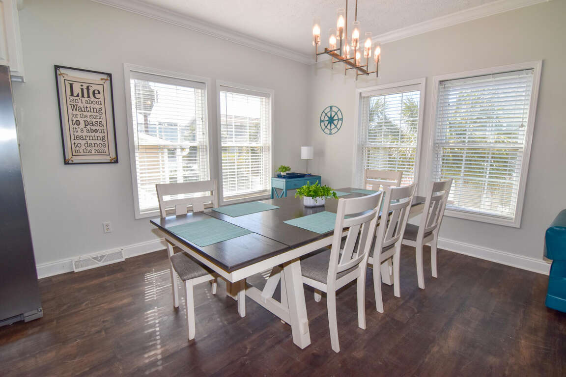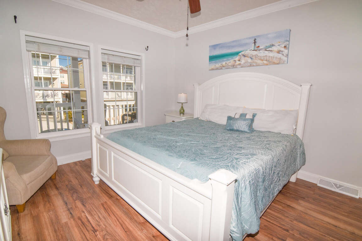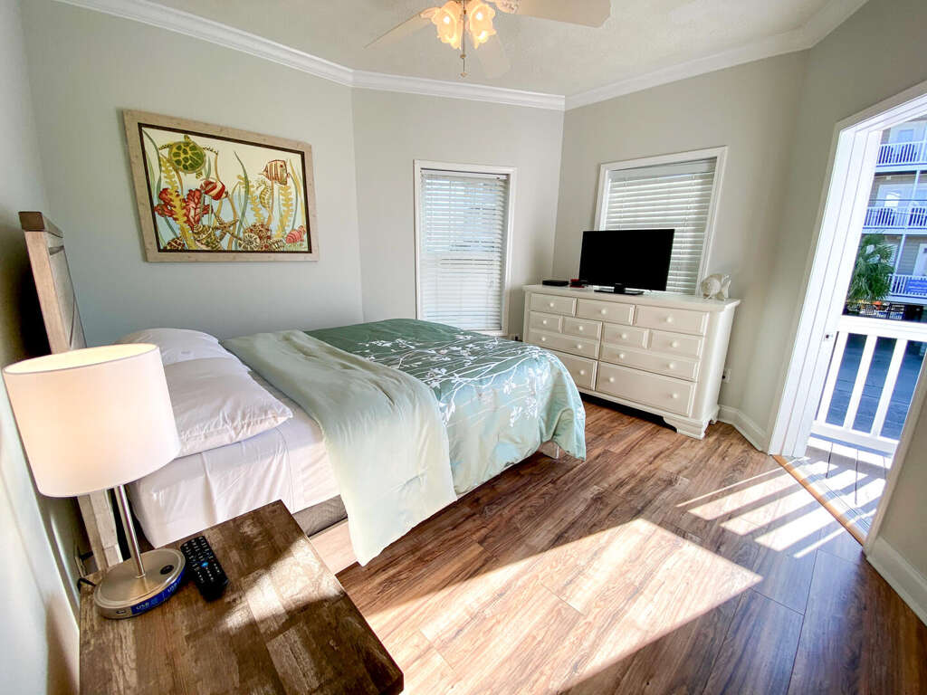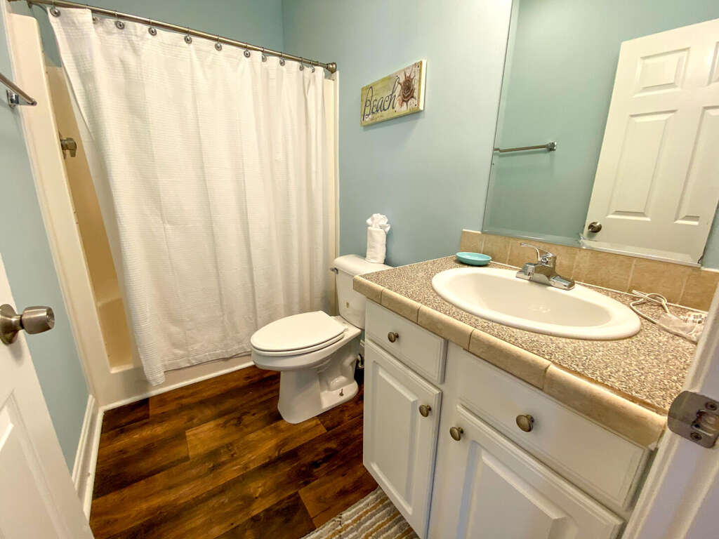 The spacious first floor has a living room with a 65" flat screen TV. The open floor plan makes visiting with the family so much more enjoyable as the kitchen, dining area, and living room area flow into one. On the first floor is a bedroom with a king bed and a bedroom with a queen bed. The other 5 bedrooms are on the 2nd floor. There is a bedroom with 2 queen beds, a bedroom with 2 twin over full bunks, a bedroom with a queen bed, a bedroom with a queen bed and a twin over full bunk bed, and the last bedroom has a king bed. This North Myrtle Beach vacation rental home is just 1/2 block from the ocean with ocean views from 2 balconies where you can feel the breeze come off of the Atlantic. Relax as you enjoy your morning coffee or take an afternoon nap and wake up to a beautifully painted sunset. This North Myrtle Beach vacation rental home is perfect for large families.