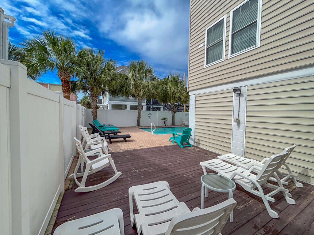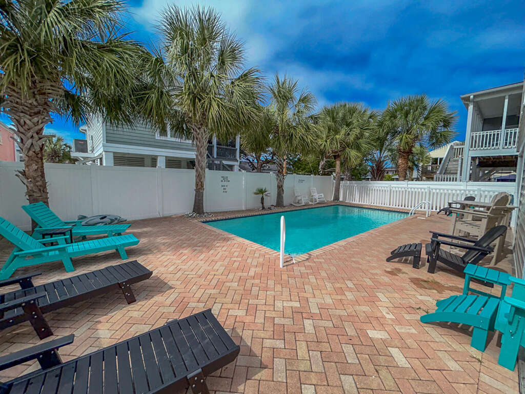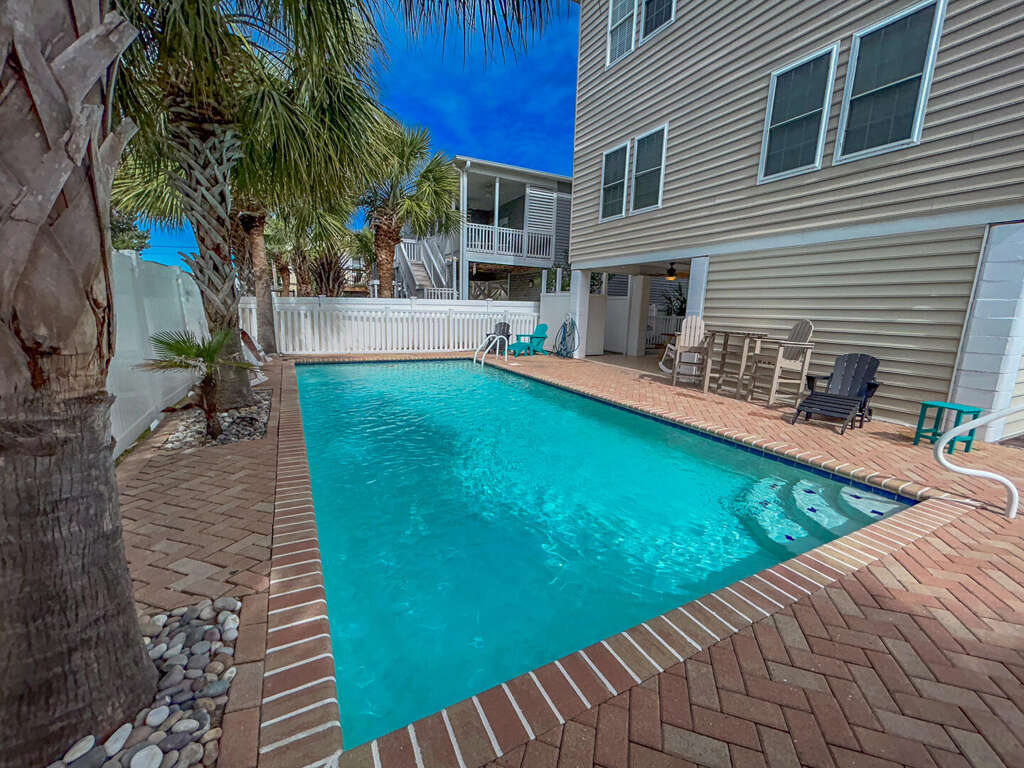 This luxurious Cherry Grove beach house also features a private pool in the backyard with a privacy fence, large pool area with plenty of chairs to lounge in, and a grilling area for having a barbeque. It is a perfect place for the kids to play in the evening while the adults enjoy time in a tranquil setting. Appliances and furnishings are upscale with flat screen TV's in all bedrooms and all living rooms as well as WIFI. LINENS and DEPARTURE CLEANING are both included in the total.