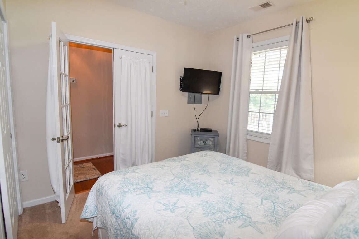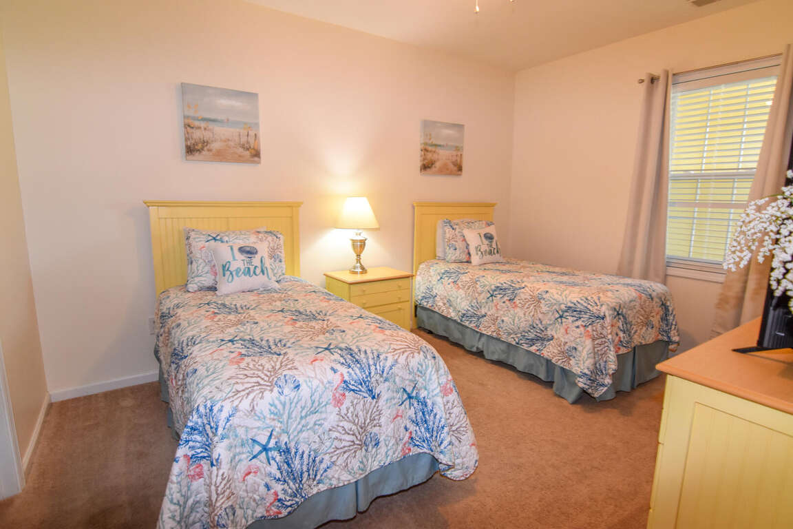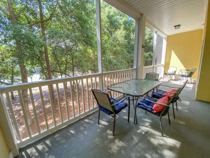 This spacious and inviting Ocean Keyes rental has view of the tennis courts. The living area opens onto the balcony with a screened porch. There is a TV in the living area and a queen sleeper sofa. The dining area has a table with 6 chairs and 3 bar stools at the kitchen bar. There is a king bed and TV in the master bedroom which also has access to the balcony. The master bathroom has a tub and shower combination. The second bedroom has a full size bed and the third bedroom has 2 twin beds. Both bedrooms have a TV. The second bathroom has a shower stall. There is a fully equipped kitchen furnished with all of your cooking needs. A washer/dryer and free WiFi are provided. This vacation rental is just steps from the outdoor pool, tennis courts, and grilling/picnic area.