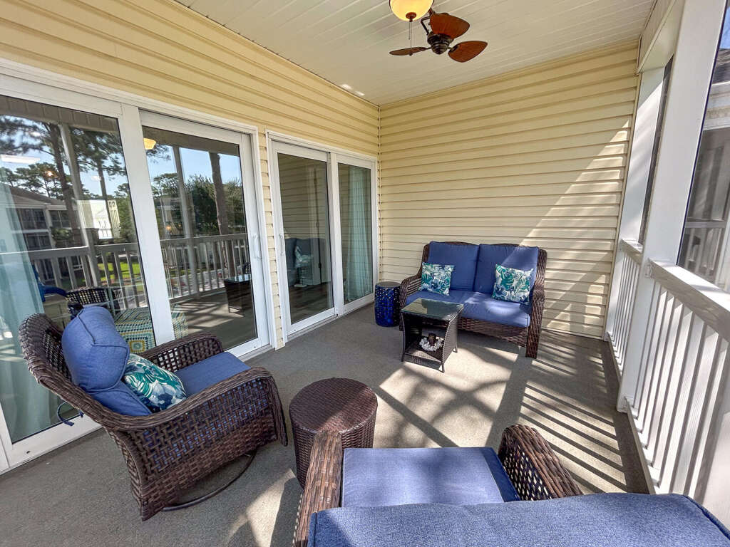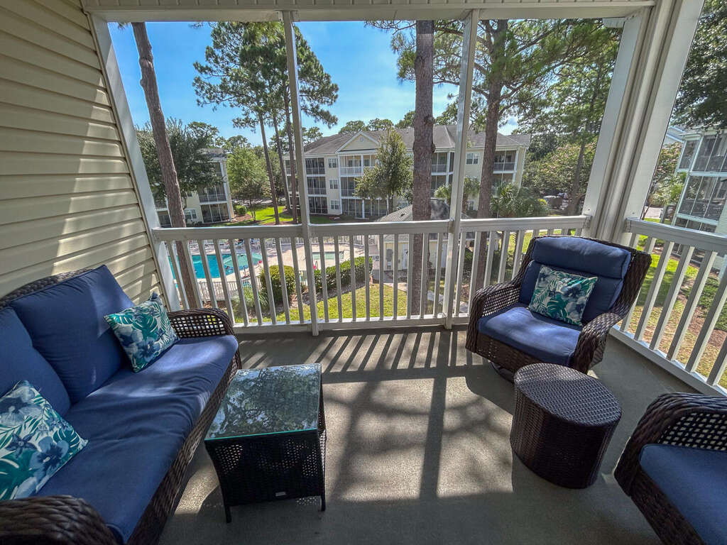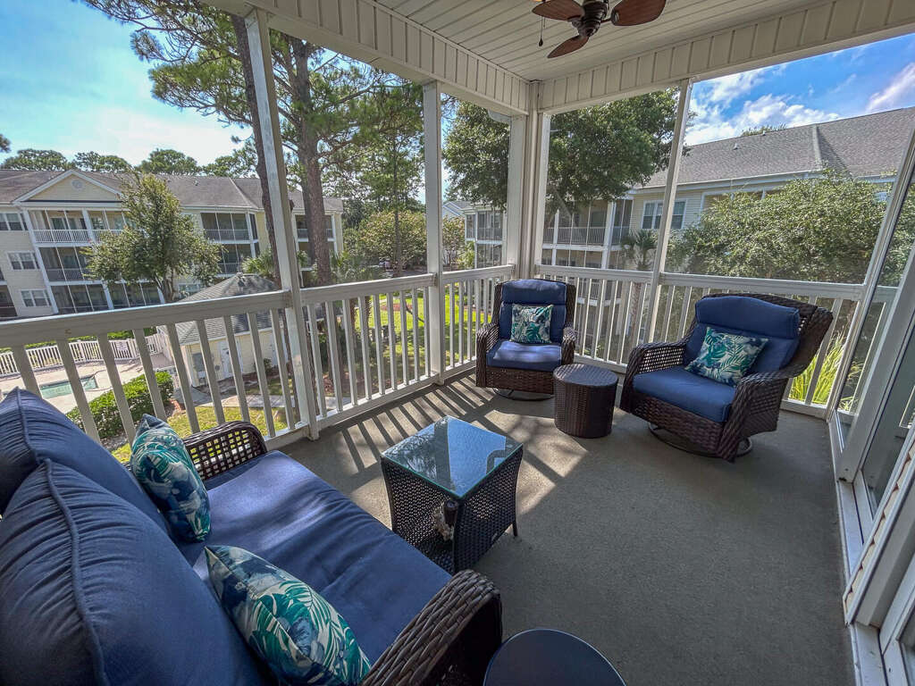 Ocean Keyes unit 3835 has a queen bed in the master bedroom with a TV and a shower stall in the master bath. The second bedroom has a queen bed and a TV. The second bath has a tub and shower combination. The condo is equipped with a full kitchen, living area with a TV, dining area, washer and dryer, free WIFI, and a very relaxing screened porch.
