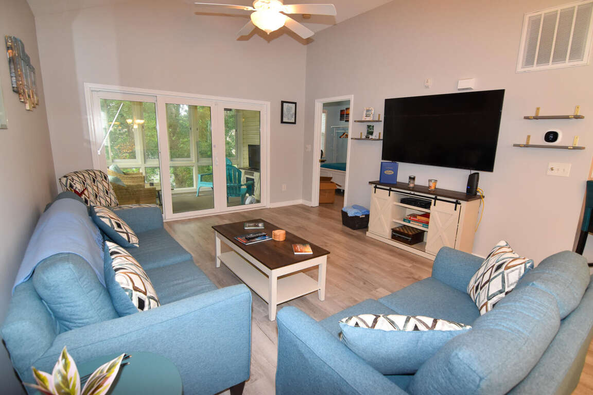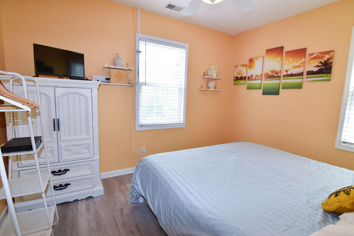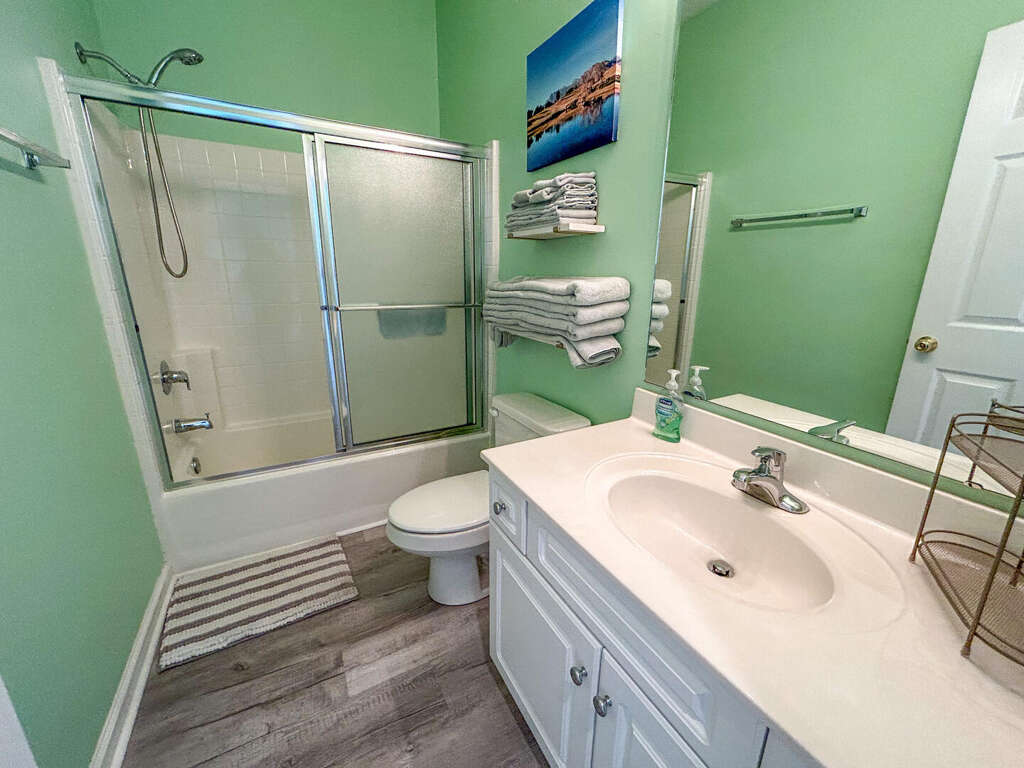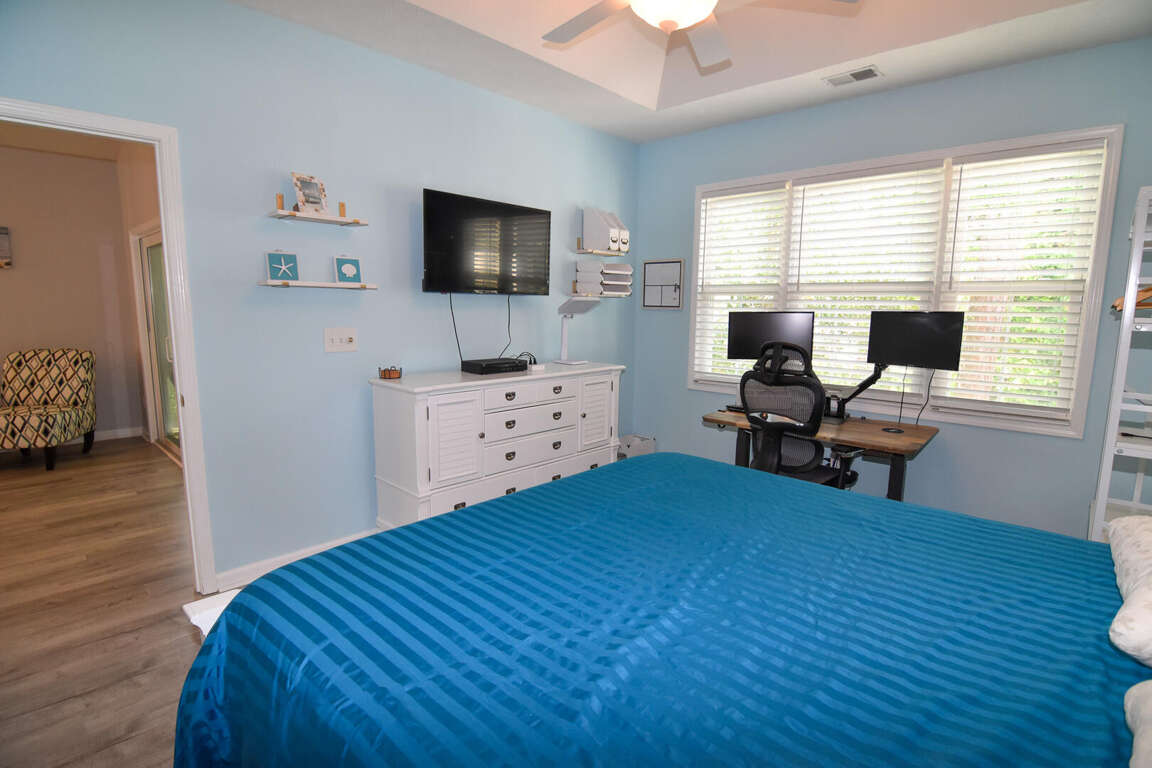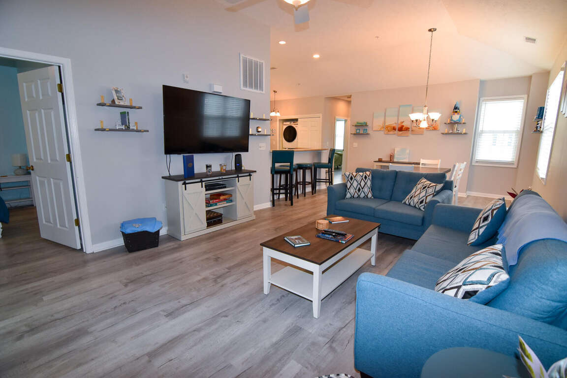 Ocean Keyes unit 4231 has a king bed in the master bedroom with a TV and master bath with a tub/shower combination. The second bedroom has a king bed and a TV. A queen bed and TV are in the 3rd bedroom. The other bathroom has a shower stall. The condo has a fully equipped kitchen and dining area with a table that seats 6 and 4 at the bar. The living area has a queen sleeper sofa, TV, and opens onto a balcony/porch (with lots of privacy). The porch is enclosed, screened in, and also has a TV. This rental also has a washer and dryer, free WiFi, and beach gear in the closet provided for your use by the owner.
